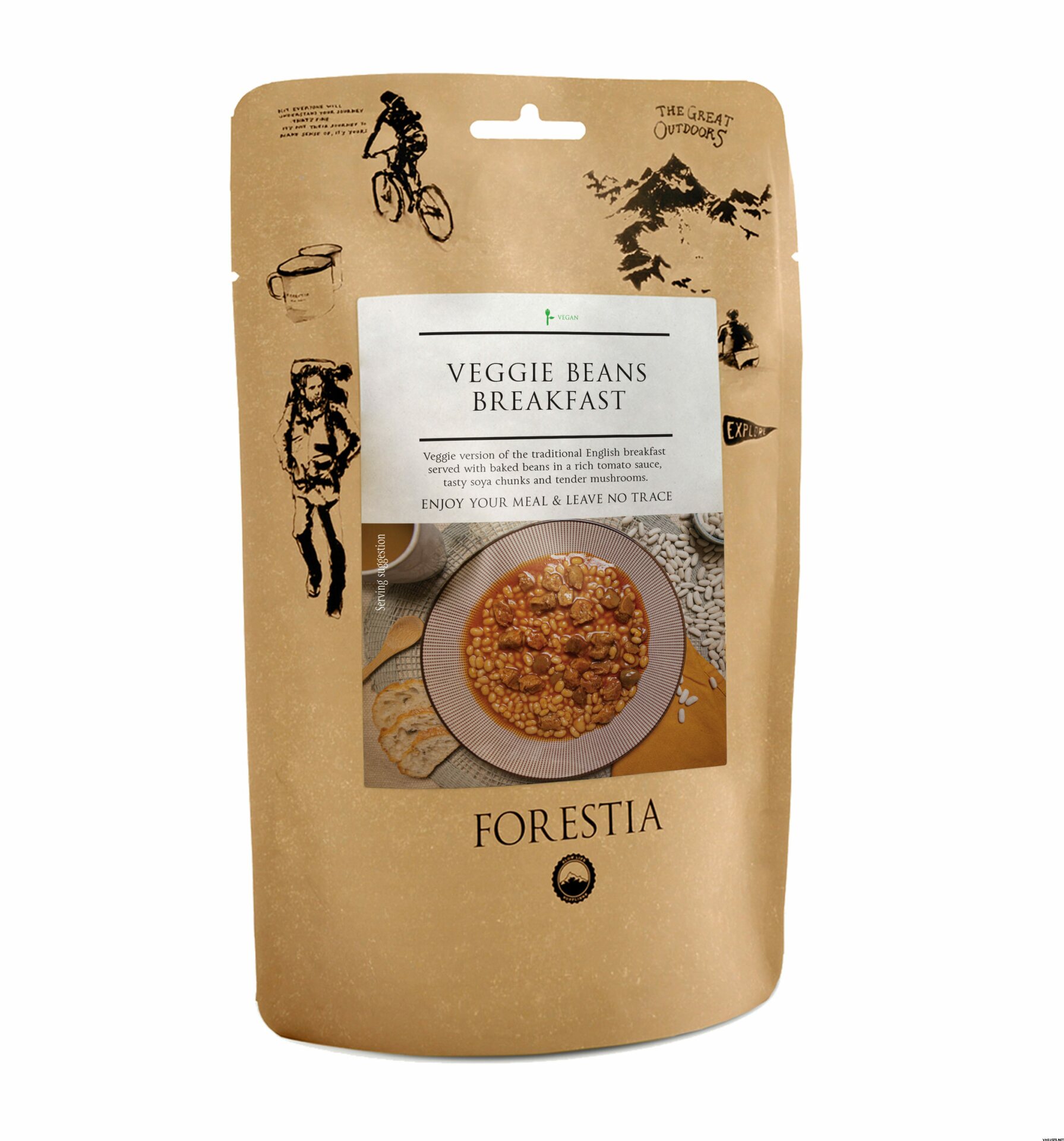 Veggie version of the traditional English breakfast served with baked beans in a rich tomato sauce, tasty soya chunks and tender mushrooms. Single serving. Comes with Self-Heater.