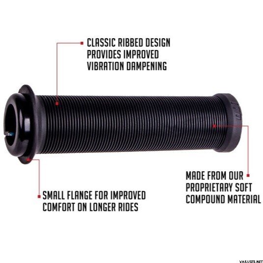 The newly redesigned Longneck Lock-On v2.1 Grips offer a fresh update to an iconic grip design, featuring the v2.1 Single-Clamp locking system for easy installation and guaranteed slip-free performance. The outer ends of the grips are now softer for enhanced hand comfort and reinforced with harder plastic to prevent blowouts. Perfect for long rides, these grips provide excellent vibration dampening and a comfortable grip, whether you ride with or without gloves.