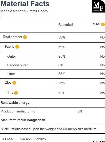 Secondary fabric: 20D Pertex Quantum Air with fluorocarbon-free DWR (50gsm)