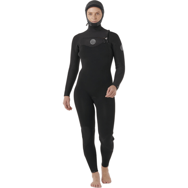 The Rip Curl Flashbomb Chest Zip Hood 6/4 Womens wetsuit is designed for extreme cold conditions, offering superior warmth and flexibility. This women's watersport wetsuit features a 6x4 mm thickness and incorporates advanced E7 and E6 flash linings for enhanced insulation. With mesh skin panels and sealed cuffs, it ensures a snug fit while maintaining flexibility. The wetsuit also includes an internal key pocket and utilizes 3/4 Fusion dry seam technology for optimal performance in the water.
