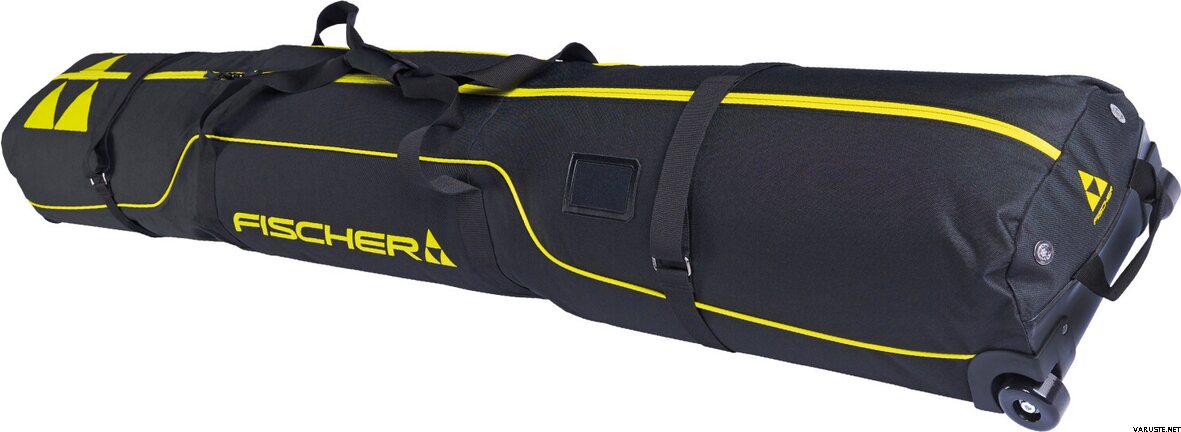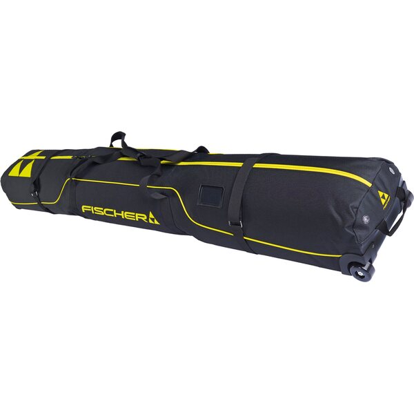 The Fischer Skicase 2 Pairs Alpine Race Wheels 195 offers a practical solution for transporting two pairs of skis. This ski bag, measuring 195 cm, features wheels and a reinforced bottom for smooth movement across various surfaces. It includes a separate boot pocket for organization, compression straps to secure gear, and durable handle straps for easy lifting. The double zipper design ensures convenient access and adjustment. Crafted from recycled PET fabric, it combines functionality with sustainability.