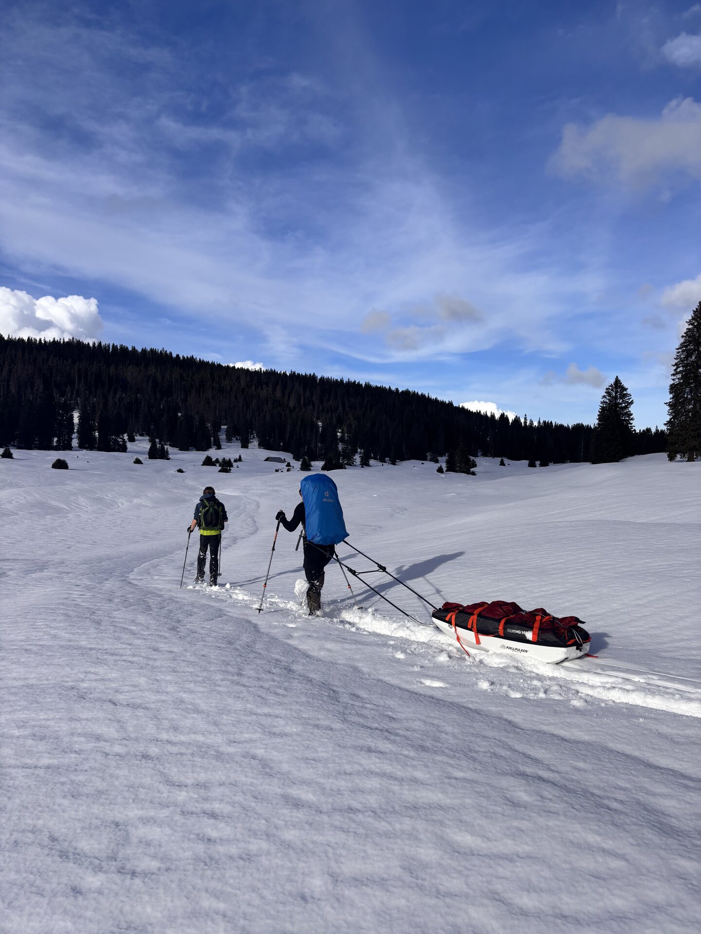 The Fjellpulken Touring 145 is a robust ski touring pulk designed for both short and extended adventures. Its ripstop sled cover, featuring a 10,000 mm water column and an 8 mm Vislon YKK zipper, ensures your gear stays protected from the elements. The sled is equipped with four durable 38 mm webbing straps with Duraflex buckles and a 6 mm Robline bungee cord, providing secure and adaptable cargo management. The 1000D nylon webbing encircling the sled offers additional protection, while the wide rear profile enhances stability on uneven terrain. The front section is crafted for easy navigation over obstacles.