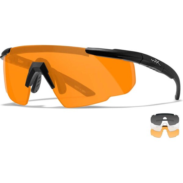 The Wiley X Saber Adv Grey/Clear/Light Rust shooting glasses and protective eyewear offer exceptional comfort and adaptability. Known for setting the standard in protective eyewear, this model combines a semi-rimless frame with adjustable telescoping temples for optimal eye protection. Users can switch between temples and an elastic strap based on their needs. The 360˚ wire-core nose piece ensures a perfect fit for any nose shape, and the glasses are NVG compatible, making them suitable for a wide range of activities.