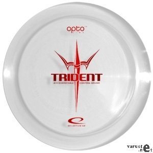 Valmistajan tuotekuvaus: Trident is one of three upcoming drivers from Latitude 64°. It's in the middle of the pack in terms of overstability and is rated as +2.4 This disc is another control driver that can be relied on even by players with the capacity to drive 600ft. The grip is comfortable on this rather flat disc and it will initially be released in Opto Line plastic.