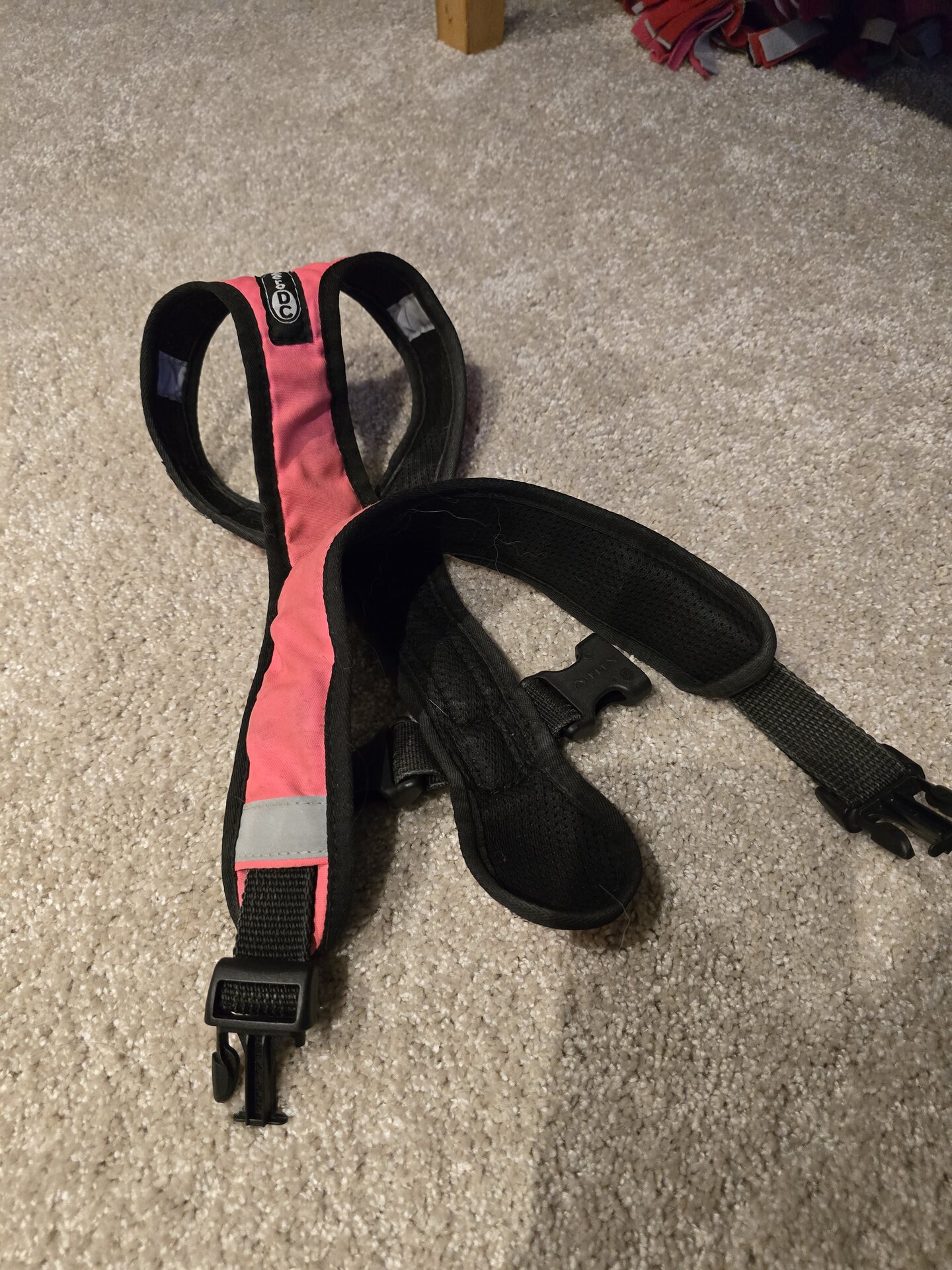 On the other hand, as for the company, I had asked them to tell me the exact color of the harness, specifying that I was looking for a "normal" orange harness and that I did not want a fluorescent orange harness.
