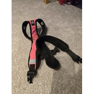 It is fully padded to provide comfort and reduce rubbing, and the underbelly strap is adjustable with a plastic slide to get a perfect fit. It has a ring attachment on the back for walking on a leash, or using for canicross, skijor and other sporting events. Reinforced stitching makes it a durable harness that both looks great and performs with excellence.