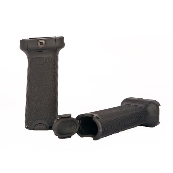 • Hinged trap door offering storage inside the grip with a water resistant rubber gasket.