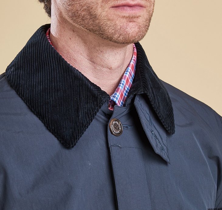 The Barbour Harrier Jacket is a longer-length men's waterproof mac. The sit-down needlecord collar and concealed button fastenings create a clean, smart appearance, while Barbour's signature Classic Tartan cotton lining adds extra sophistication.