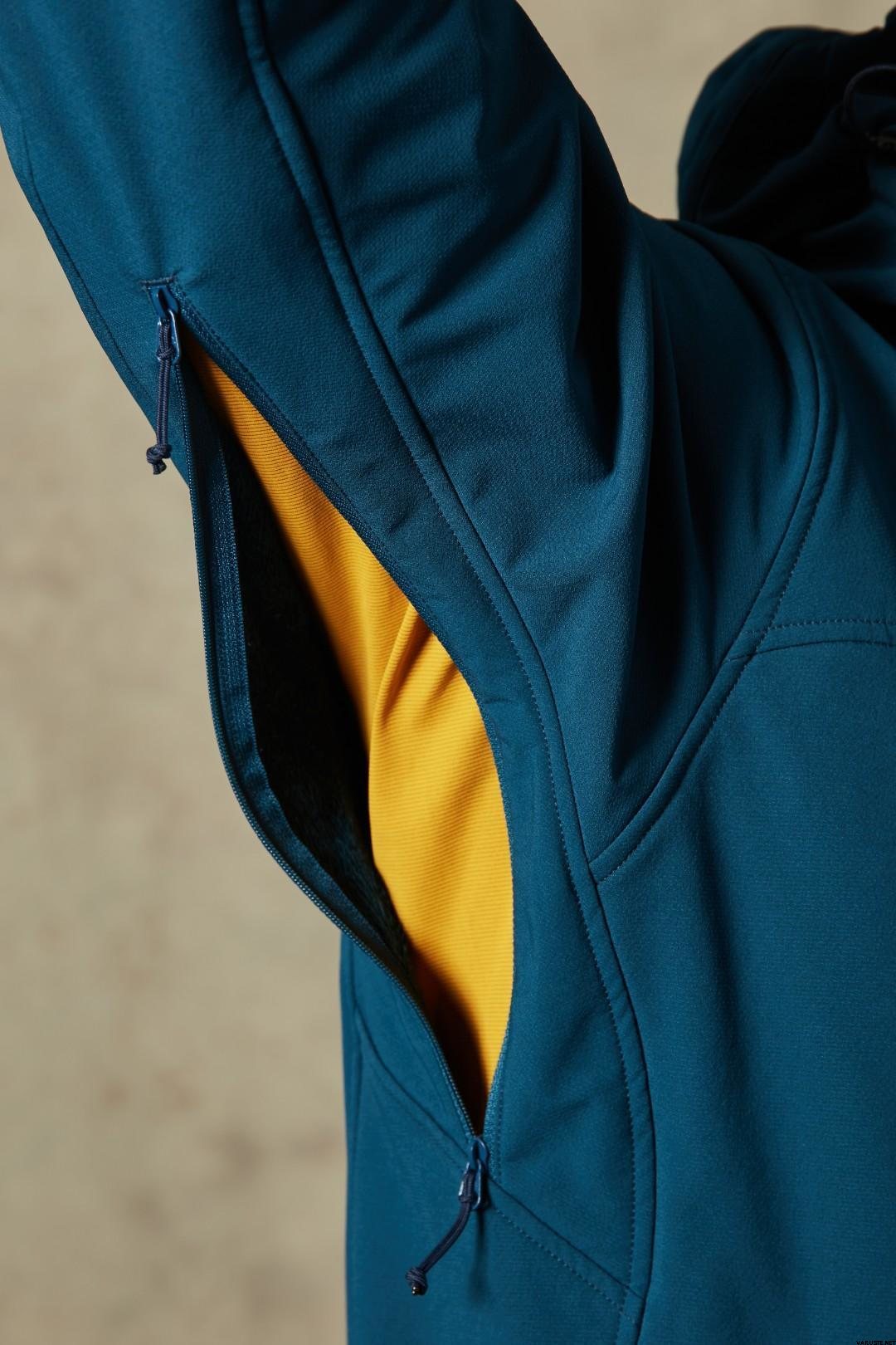 The Integrity Jacket uses new fabric technology combining the best of single and double weave stretch softshell fabric with a high loft backer for additional warmth. Technical features include a fully adjustable hood with reinforced brim and flexible polymer peak, and two harness compatible mesh lined hand pockets. In a slim fit and with fully articulated sleeves for improved freedom of movement, hook and loop adjustable cuffs and pit zips aid ventilation in more active moments.