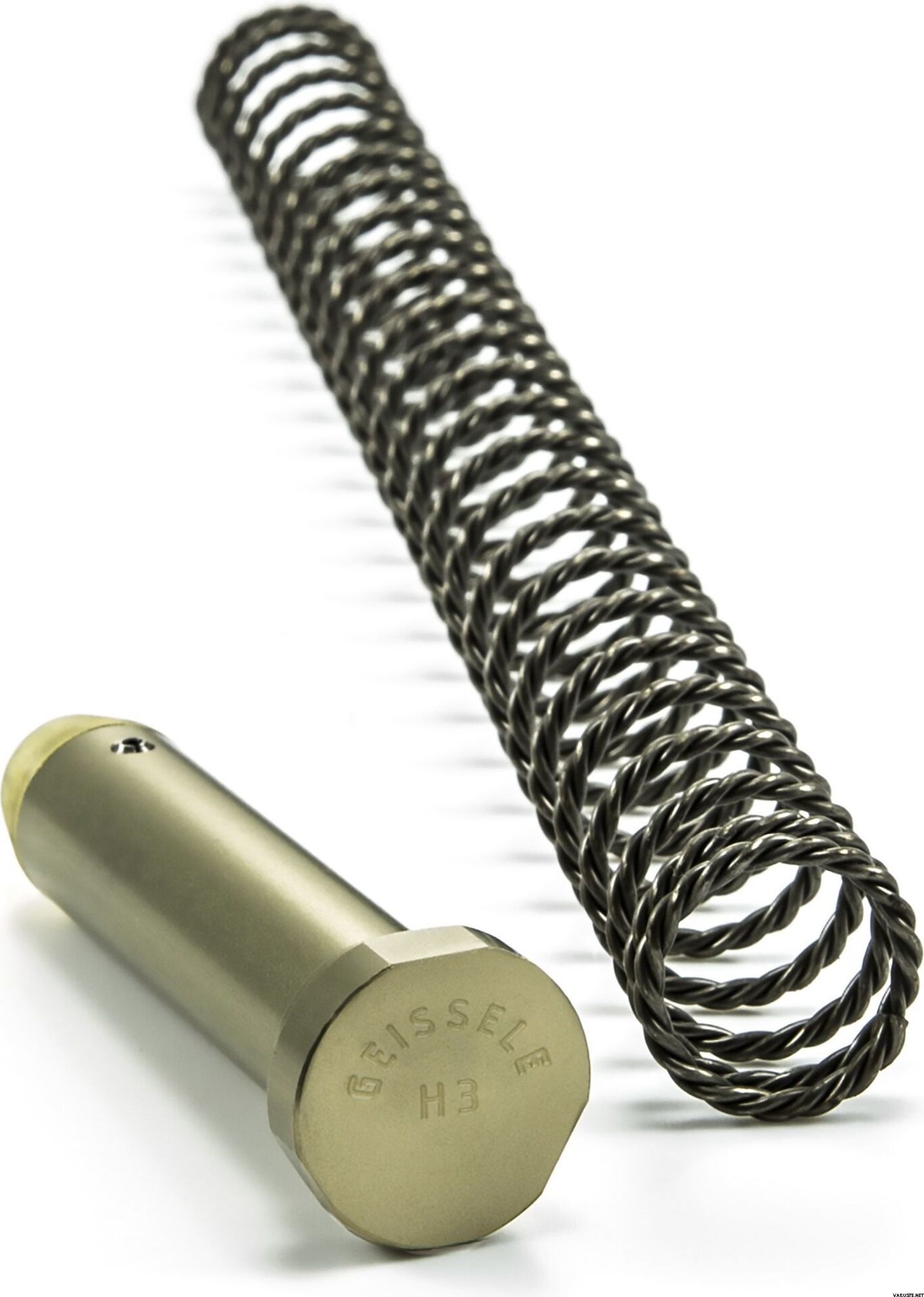 El resorte Geissele Super 42 fue diseñado para mejorar la función y confiabilidad de su rifle de patrón AR-15. Su diseño de resorte único utiliza tres hilos de alambre independientes, al igual que la ametralladora alemana MG42. Este concepto actúa como un amortiguador armónico y un absorbedor de energía al permitir que los resortes se flexionen por separado entre sí. Esta flexión ayuda a desplazar el exceso de energía, lo que disminuye la posibilidad de falla del resorte y ayuda a que su AR-15 sea más confiable.