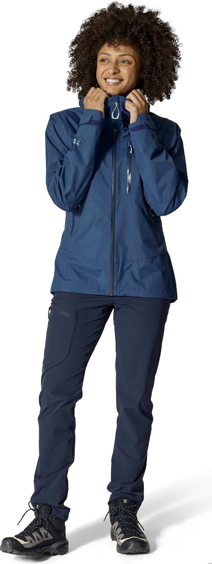 - Bolsillos en forma de A accesibles incluso cuando se usa un arnés o una mochila