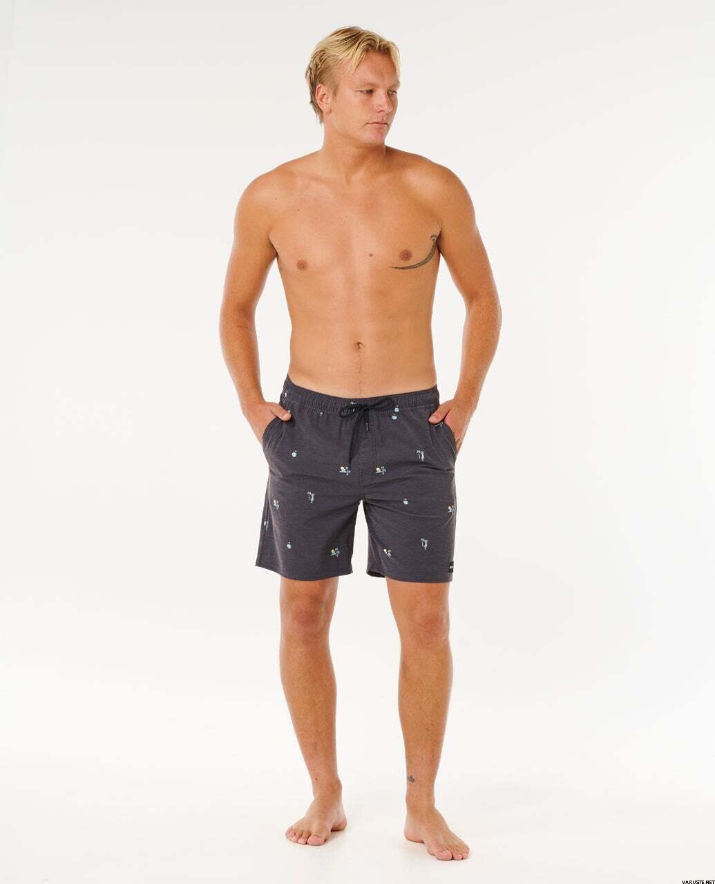 El bañador Rip Curl Skelly Breach Volley para hombre ofrece una sensación de secado rápido y repelencia al agua para disfrutar de días activos en la playa o la piscina. Diseñado para la libertad de movimiento, cuenta con un tejido hidrofóbico que repele el agua rápidamente después de nadar. Sus prácticos bolsillos permiten tener a mano los objetos pequeños, y el estampado integral le da un toque surfero inconfundible.