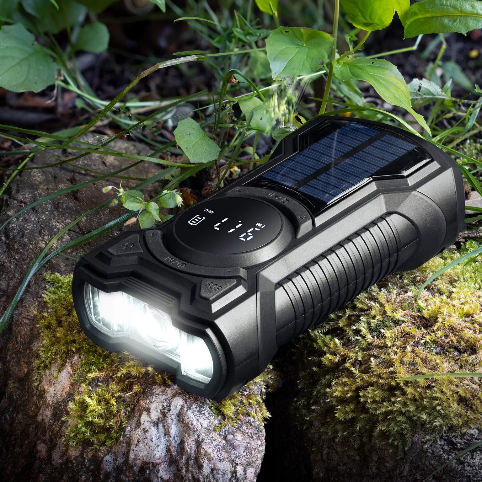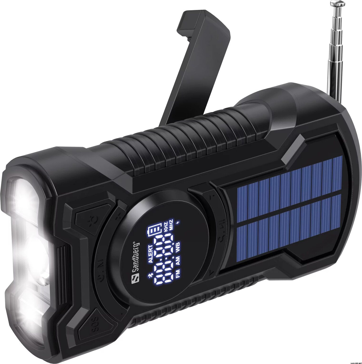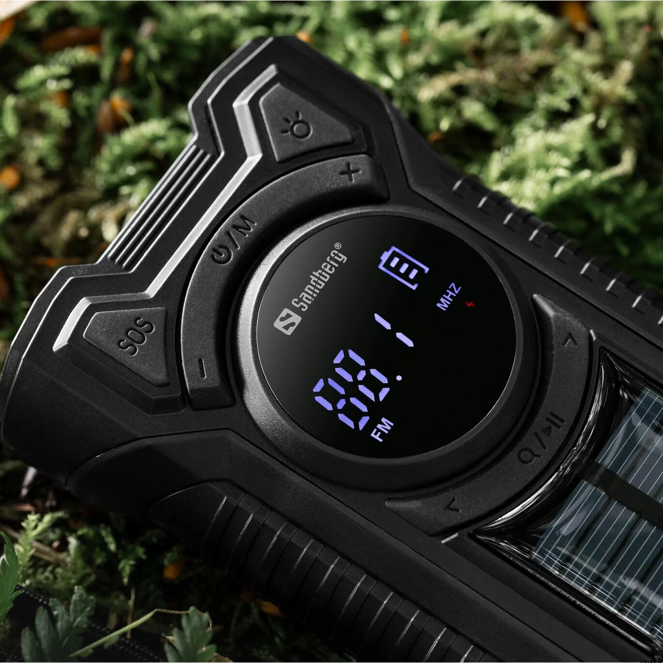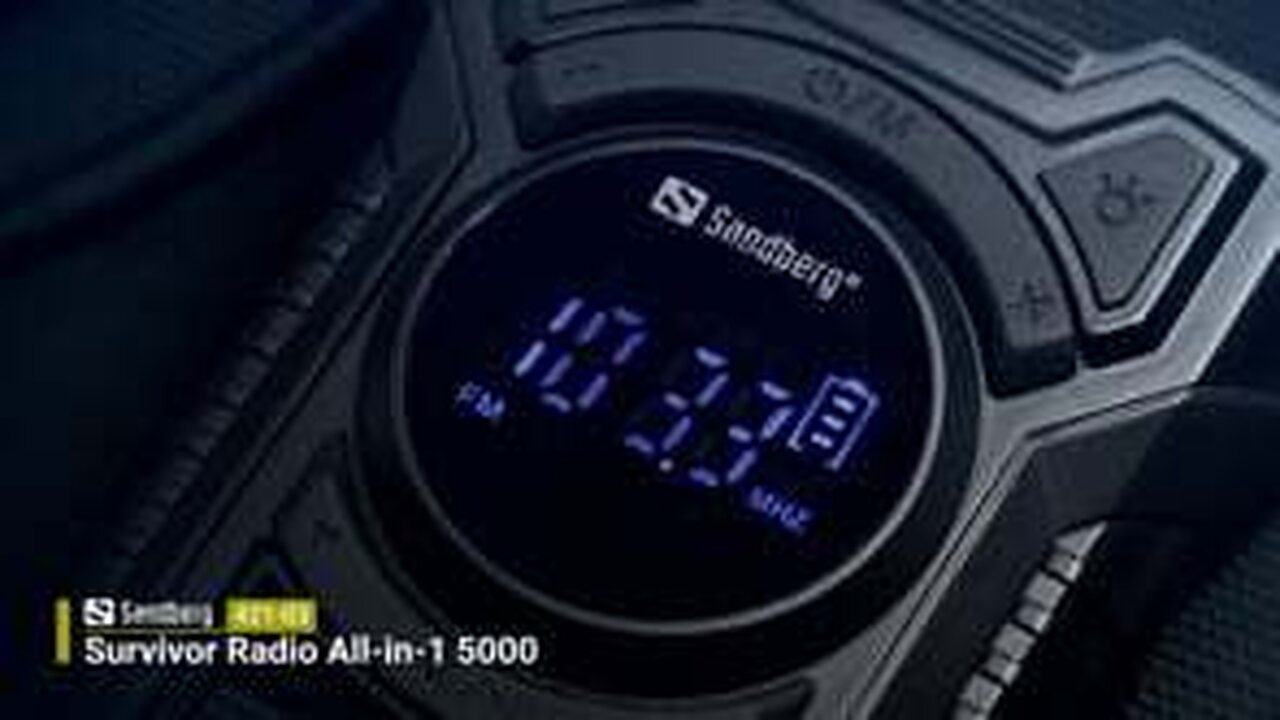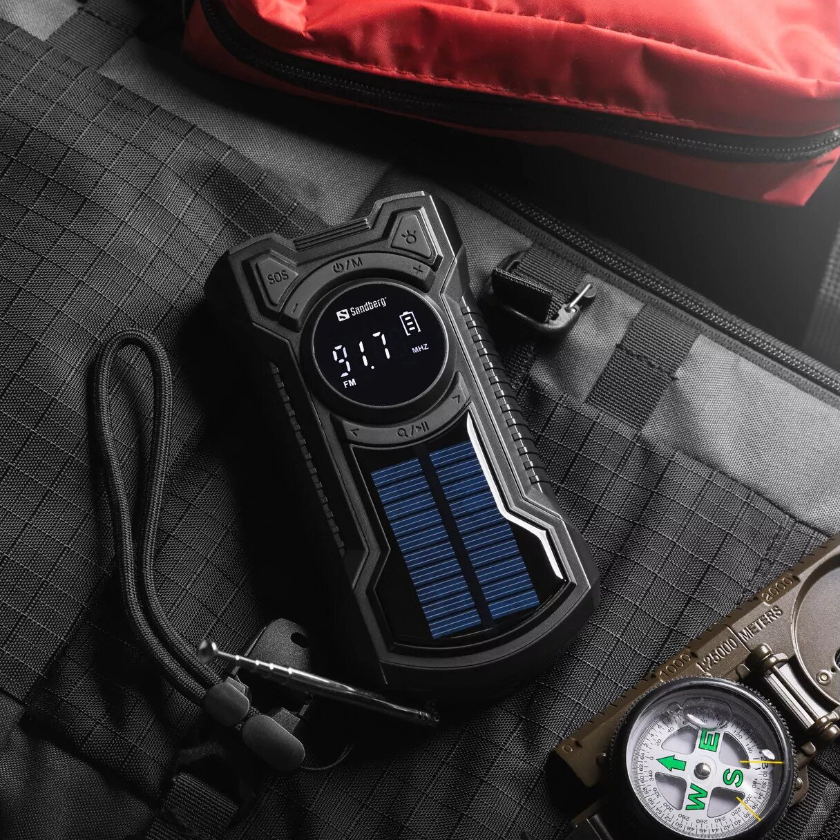 La radio portátil Sandberg Survivor Radio All-in-1 5000 es compacta y robusta, diseñada para aventuras al aire libre y situaciones de emergencia. Este dispositivo combina múltiples funciones prácticas, incluyendo una batería externa para cargar smartphones, un altavoz Bluetooth y una radio AM/FM. También ofrece funciones de iluminación que pueden usarse como linterna o lámpara de lectura. La radio se puede cargar mediante un puerto USB estándar y, en caso de corte de electricidad, se puede alimentar con el panel solar integrado y la manivela.