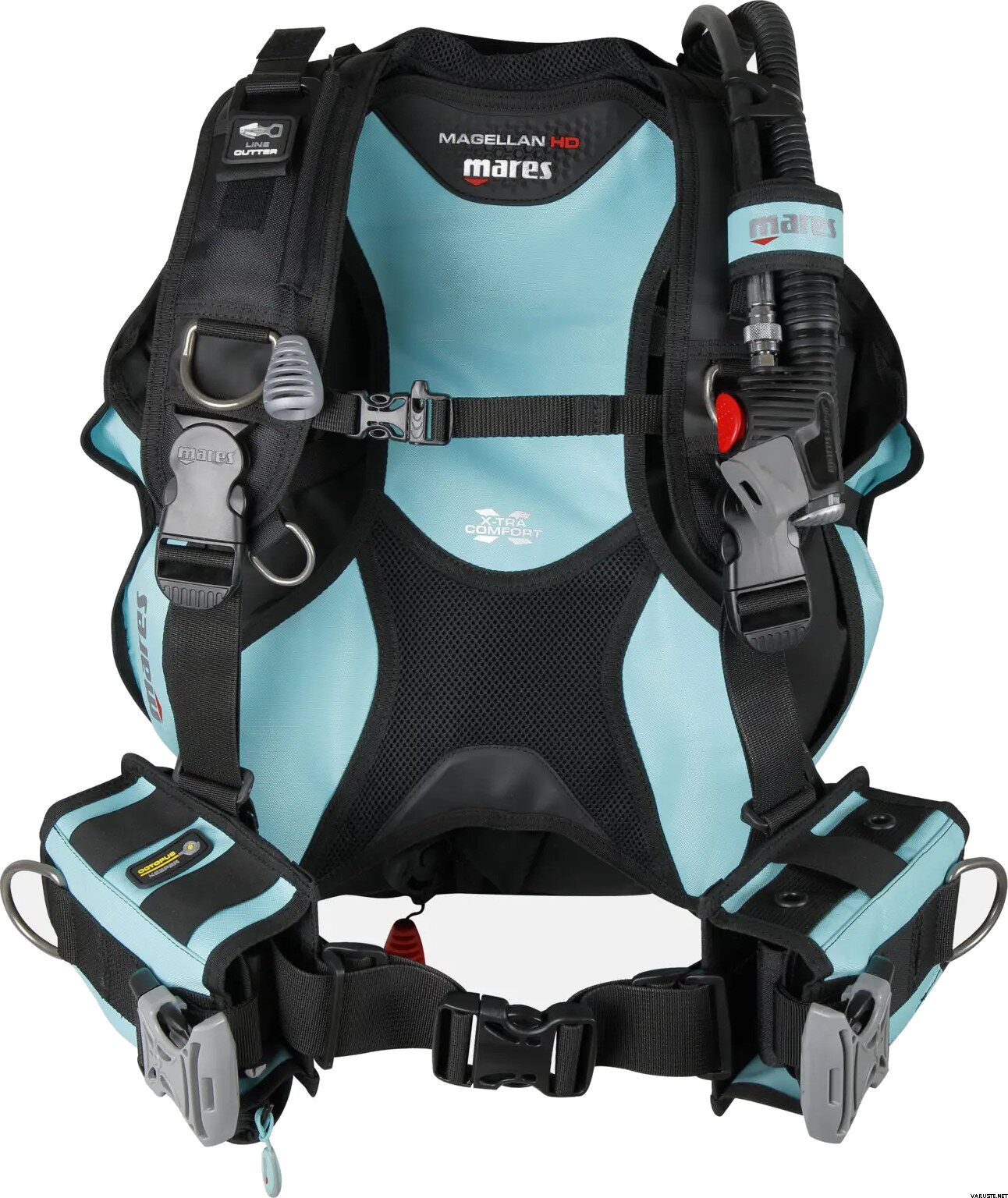 - Diseño ergonómico del inflador para ajustes de flotabilidad intuitivos.