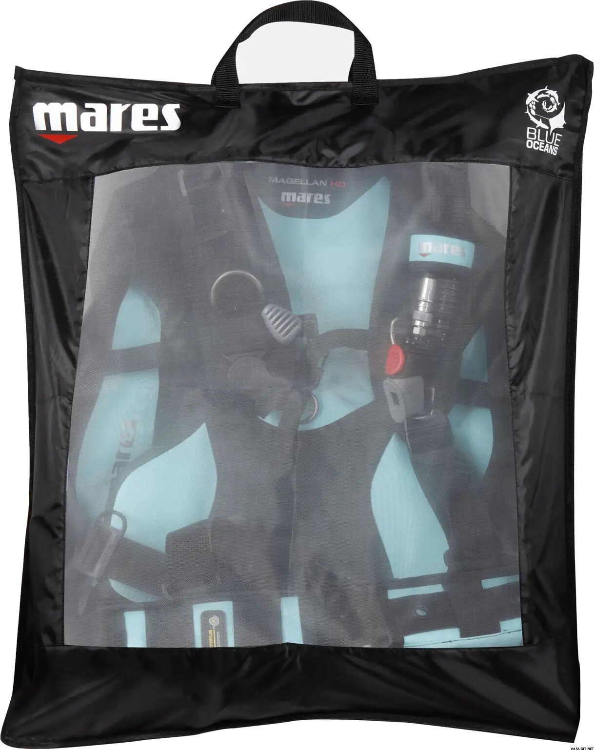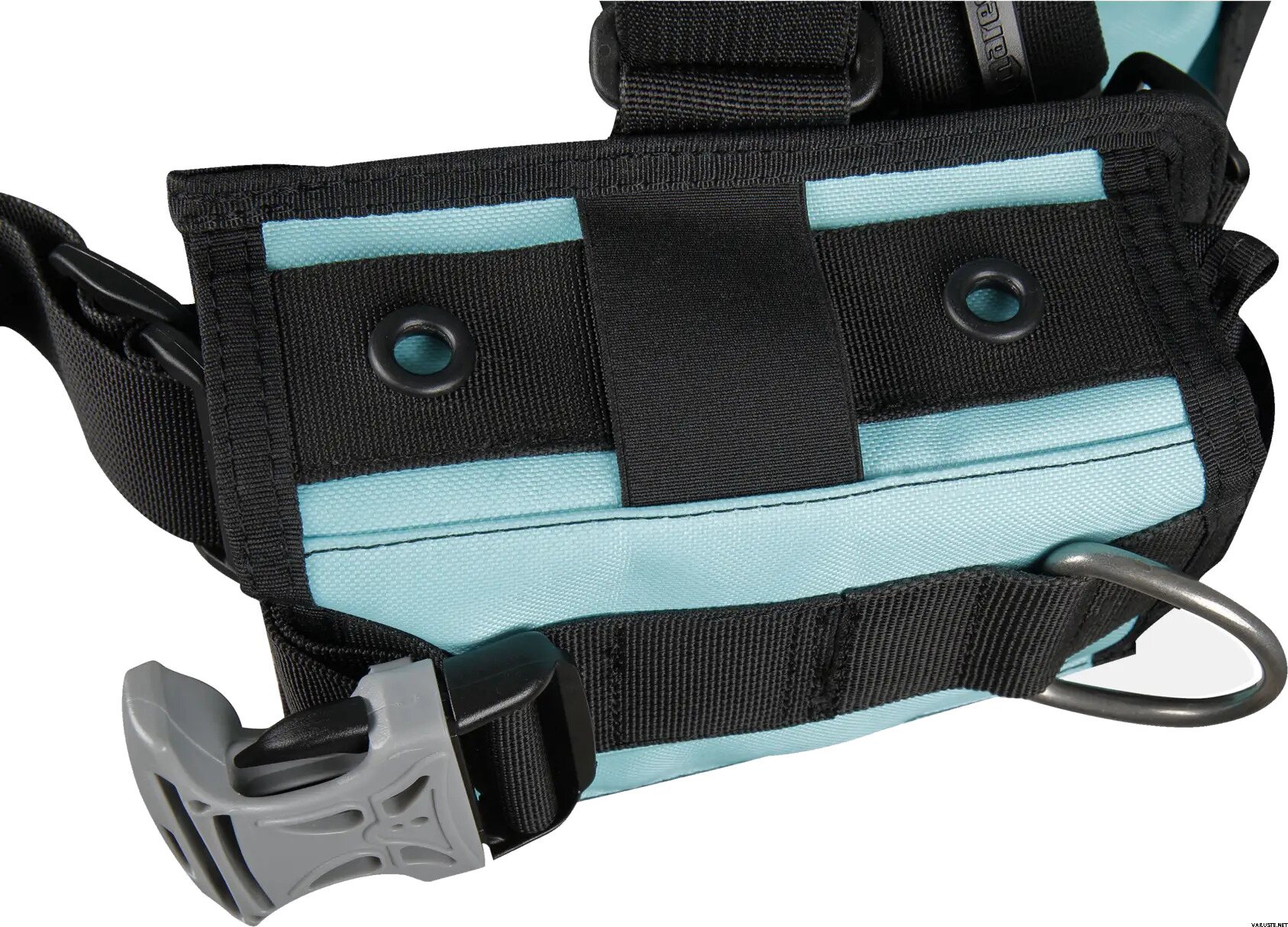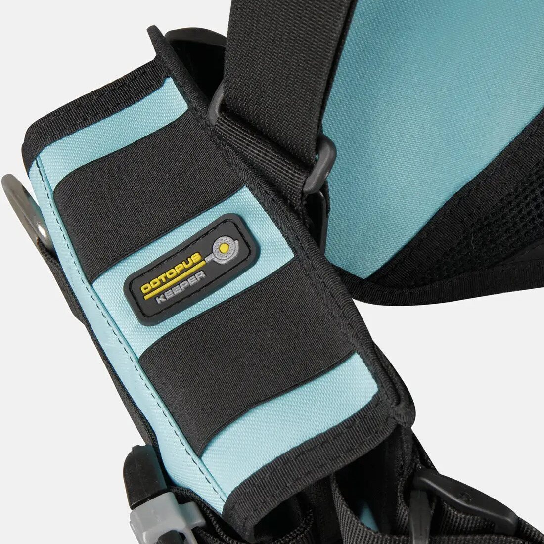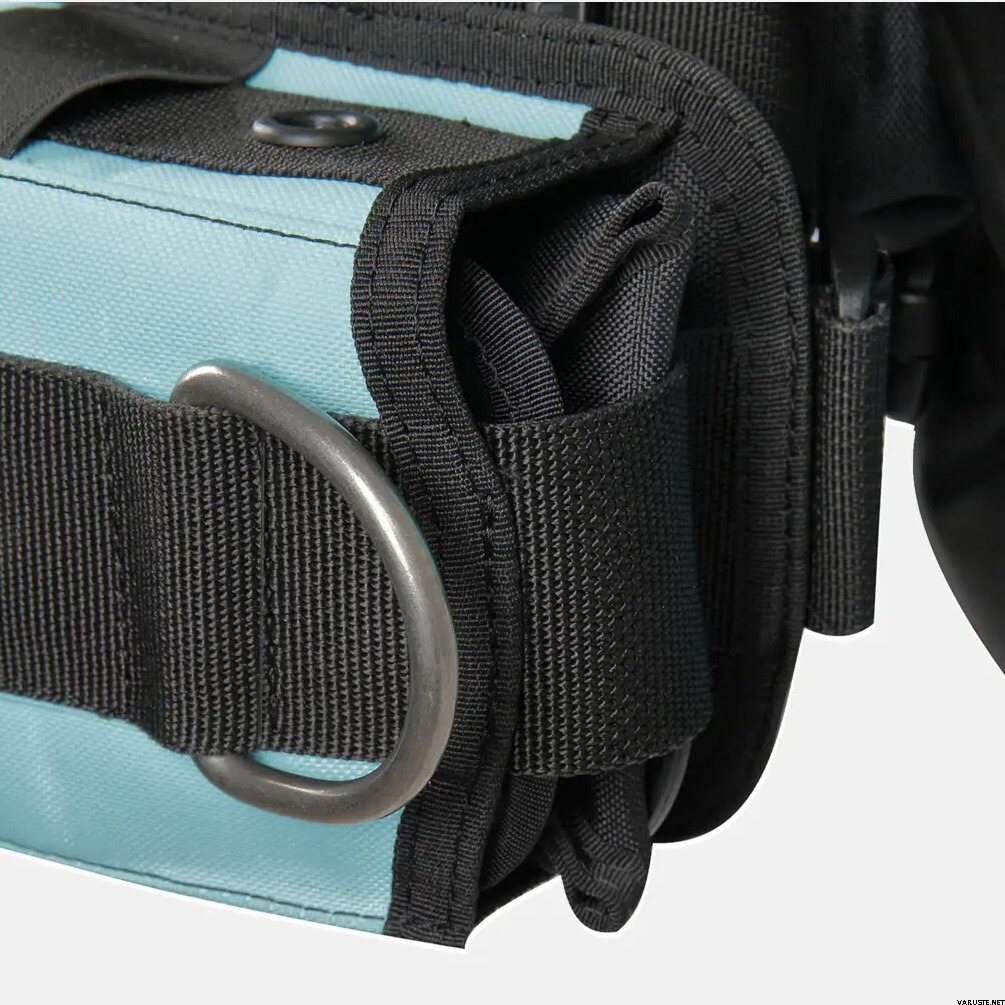 - Los sujetadores elásticos del lado derecho ayudan a mantener la manguera del pulpo en su lugar de forma ordenada.