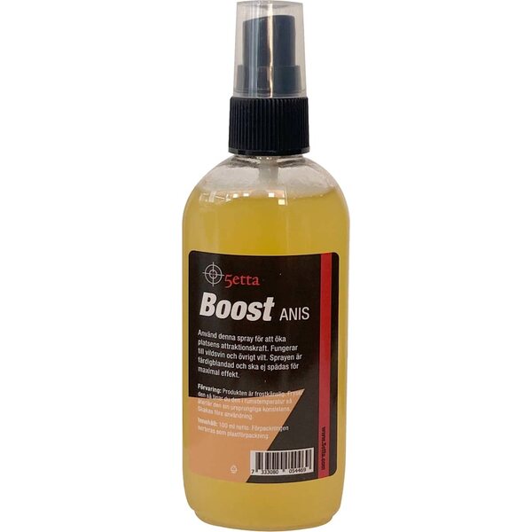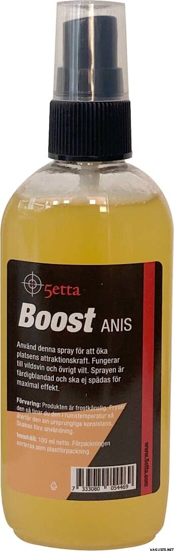 El spray atrayente de anís 5etta Boost de 100 ml está listo para usar y está diseñado para hacer que los puntos de cebo sean más atractivos, a la vez que ayuda a reducir el olor humano. Este spray se puede aplicar alrededor de un comedero, debajo de un barril, en un bloque de sal o a lo largo del sendero que conduce a la zona de alimentación. Está formulado para atraer jabalíes y otros animales de caza, y para obtener mejores resultados, debe usarse sin diluir.