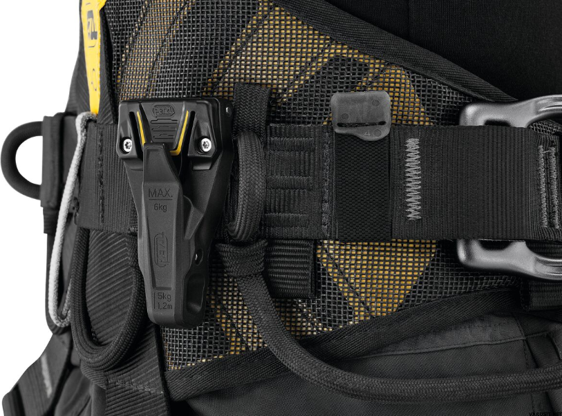 El Petzl Interfast es un accesorio de conexión compacto que ayuda a mantener las herramientas y los cables organizados en un arnés de trabajo, minimizando el volumen adicional. Este accesorio utiliza un clip superior para sujetar una bolsa de herramientas Toolbag y un botón Fast para una liberación rápida cuando sea necesario retirar el equipo.