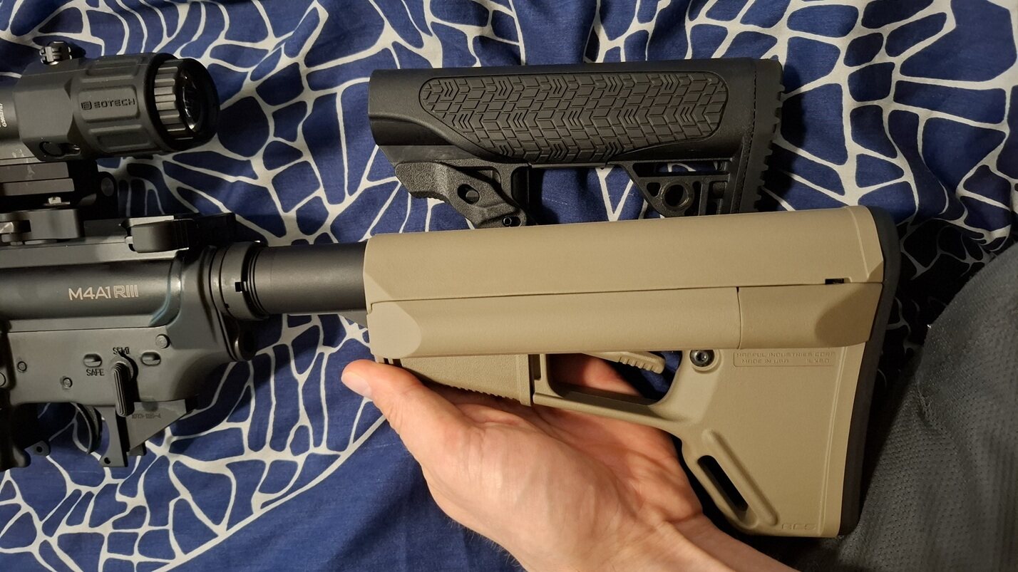 El modelo patentado Magpul ACS (carabina adaptable/almacenamiento) – Mil-Spec es una culata de repuesto para carabinas AR15/M16 que utiliza tubos de extensión de receptor de tamaño mil-spec. Un perfil aerodinámico anti-enganche protege el pestillo de liberación para evitar la activación accidental. Al igual que el Magpul CTR ® , el ACS también cuenta con un sistema de bloqueo de fricción complementario que minimiza el movimiento excesivo del material para mejorar la estabilidad y la precisión del arma*. Los tubos de almacenamiento de batería resistentes al agua, accesibles desde la parte trasera y un compartimento de almacenamiento integral en la parte trasera de la culata brindan múltiples opciones de almacenamiento. El ACS viene de serie con una almohadilla de goma de 0,30" de grosor que proporciona un apoyo positivo en el hombro para evitar resbalones, incluso con chalecos antibalas o equipos modulares.