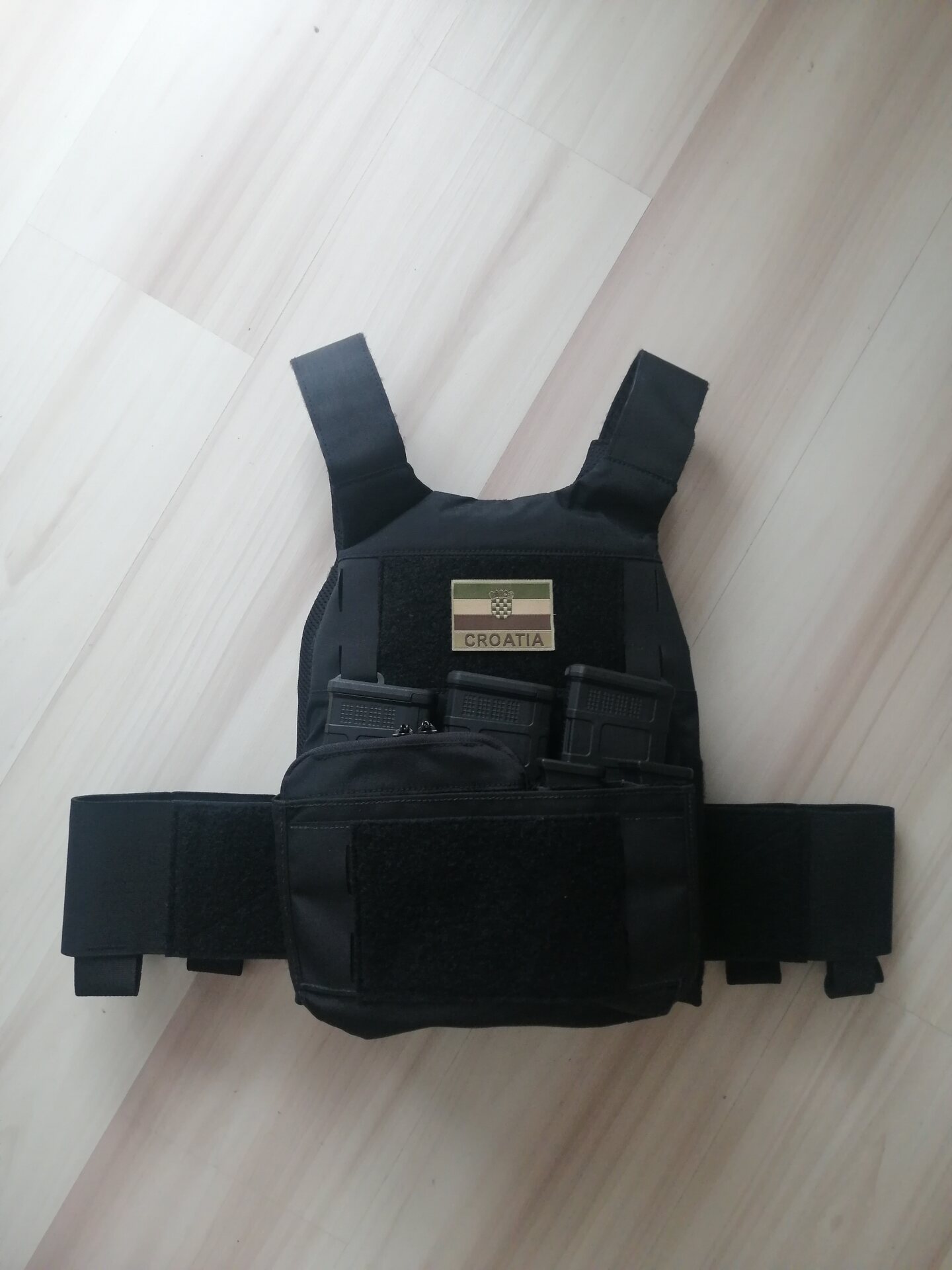 - Correas de hombro laminadas que son totalmente ajustables en la bolsa de la placa trasera para adaptarse a todos los tamaños. Bucle de velcro en la parte inferior de las correas para mayor comodidad en condiciones de poca visibilidad y hombreras ADAPT