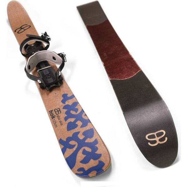 The Hok features a synthetic climbing skin integrated into the base of the ski, steel edges for durability, and a light weight cap construction. In an effort to minimize our carbon footprint, we use, a sustainable paulownia wood corereinforced with a combination of organicnatural fibers and fiberglass. Simple graphics and natural fibers combine with design themes from the the Altai Mountains for a unique look.