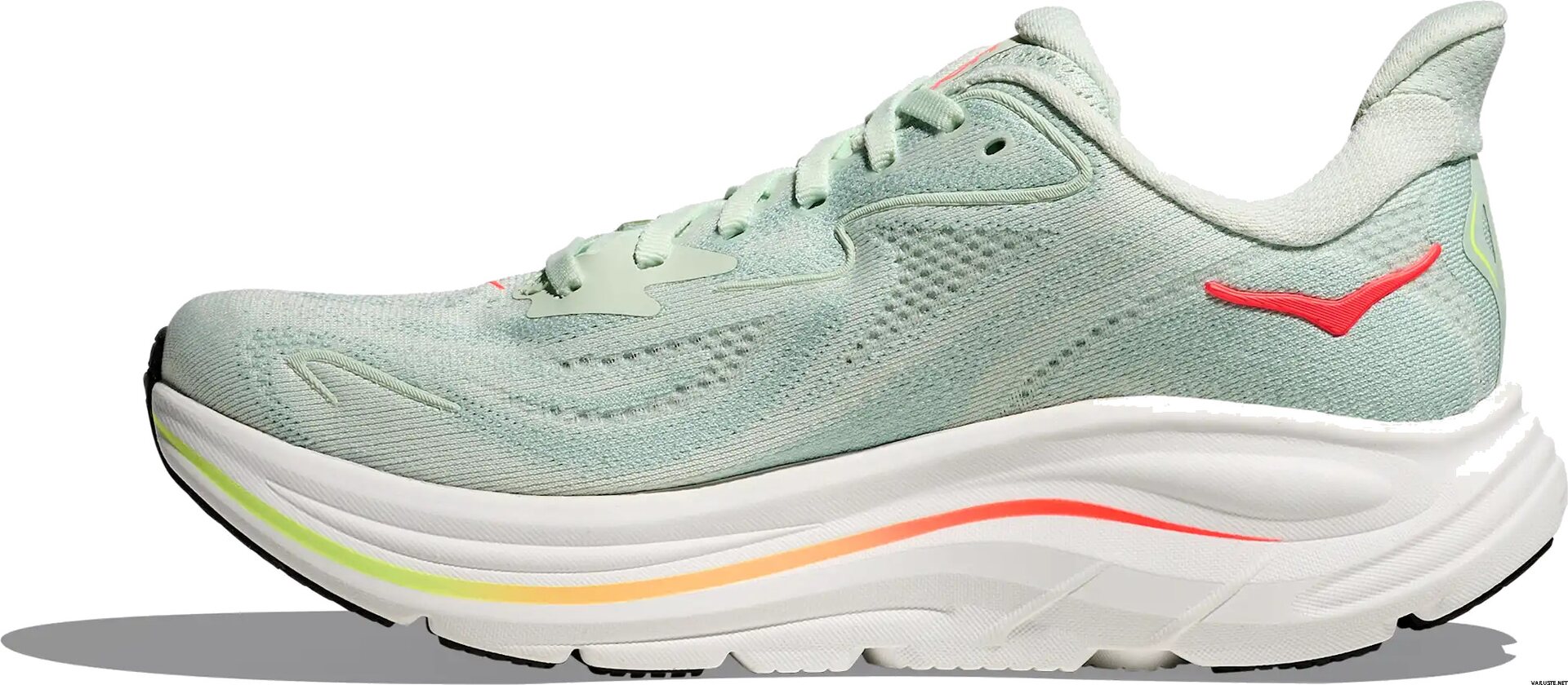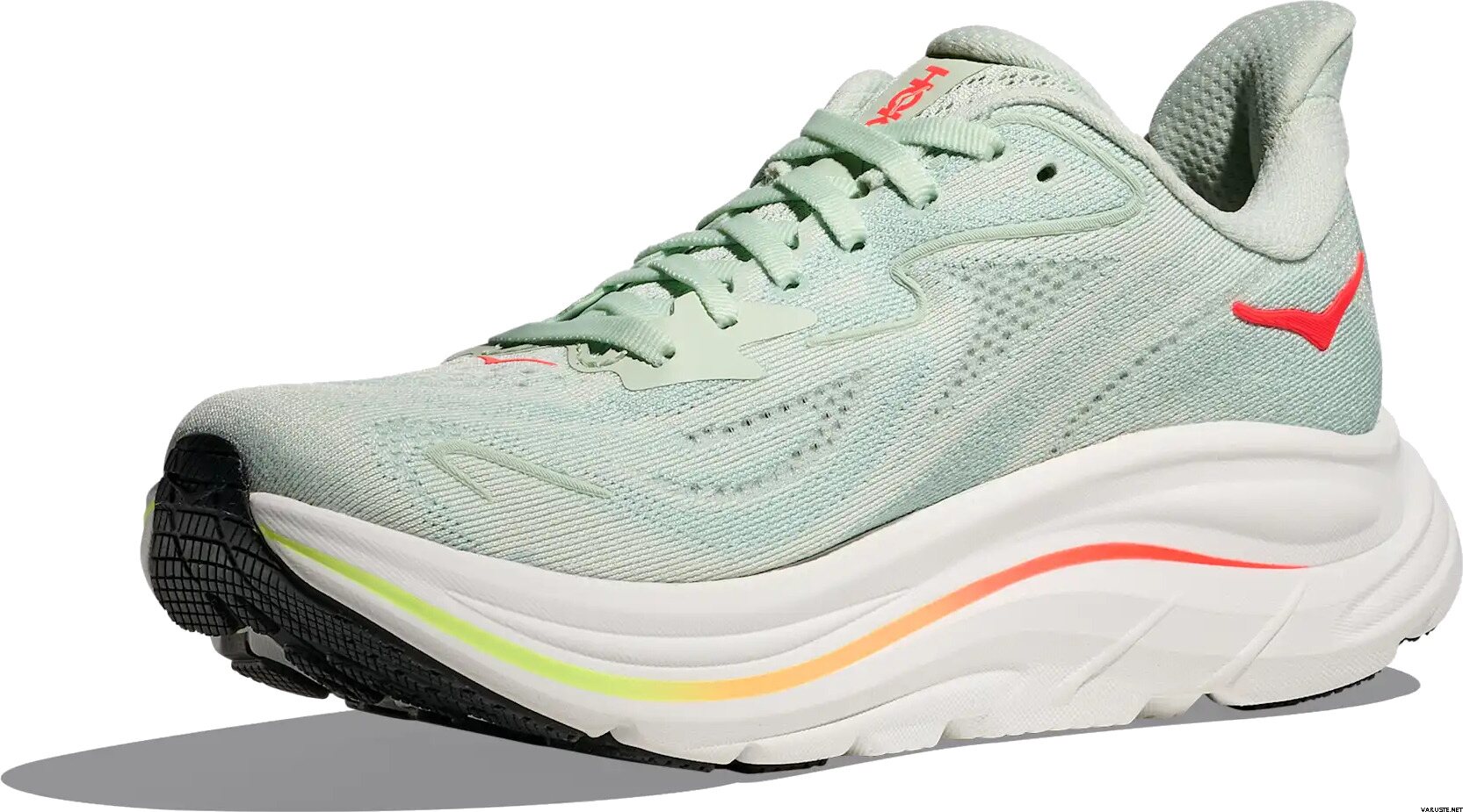 Hoka Clifton 10 Wide Womens Sea Glass / Neon Flame