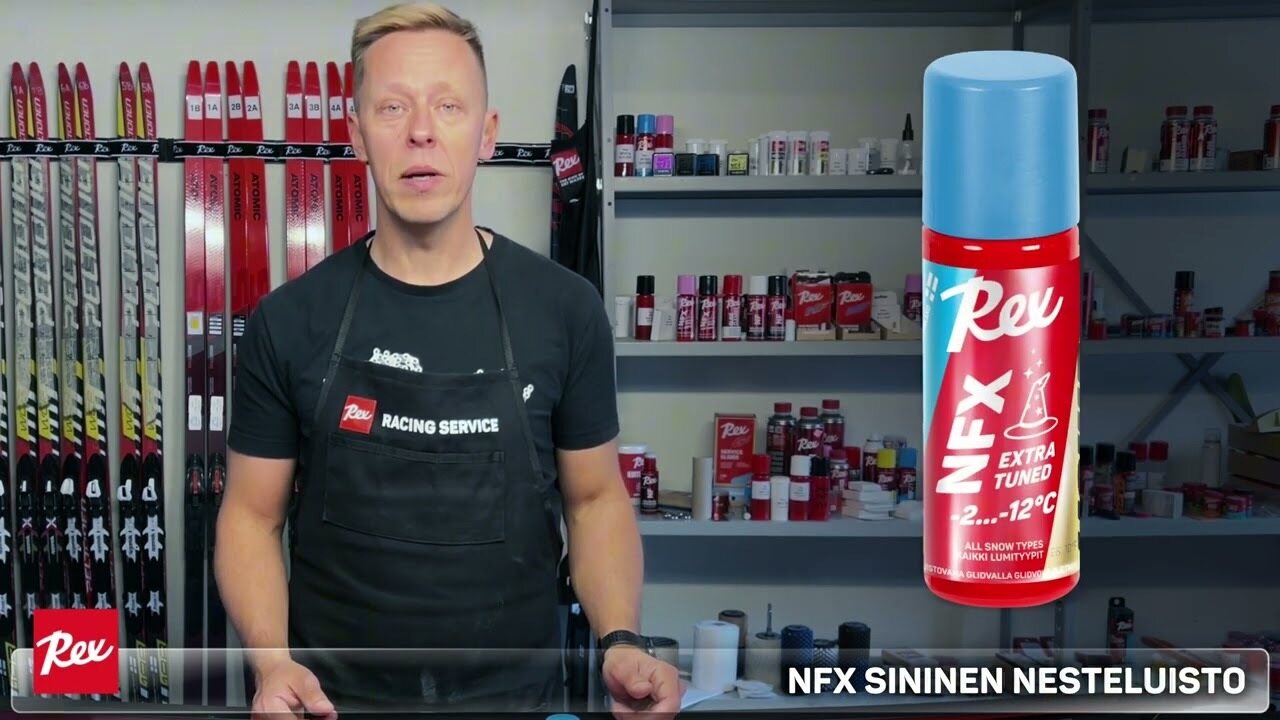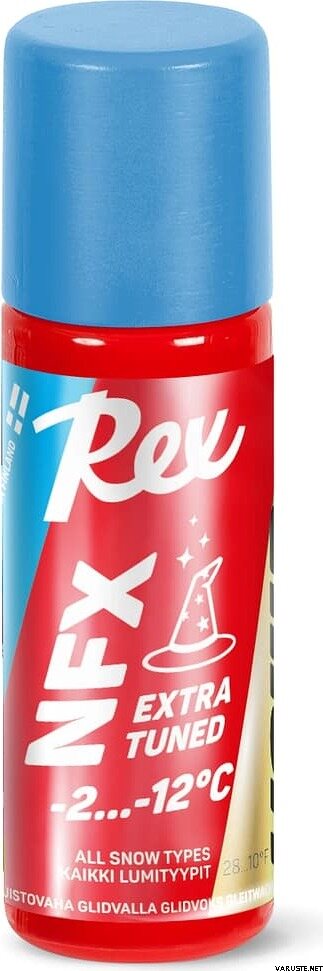 Rex NFX Blue Extra Tuned -2…-12°C 60ml pakub erakordset jõudlust võistlussuusatamiseks. See vedel libisemisvahend, mis põhineb NF21 sinise määrdeaine evolutsioonil, on rikastatud NFX21 pulbri ja optimaalse koguse OLOS viimistluspulbriga. See tagab võistlustaseme libisemise ühe pealekandmisega mugavast käsnaga aplikaatorpudelis. Täiustatud Nano-TK nanomatrix tehnoloogia tagab vastupidavuse ja tõhususe, mistõttu sobib see kasutamiseks isegi pulbervärvide peal.