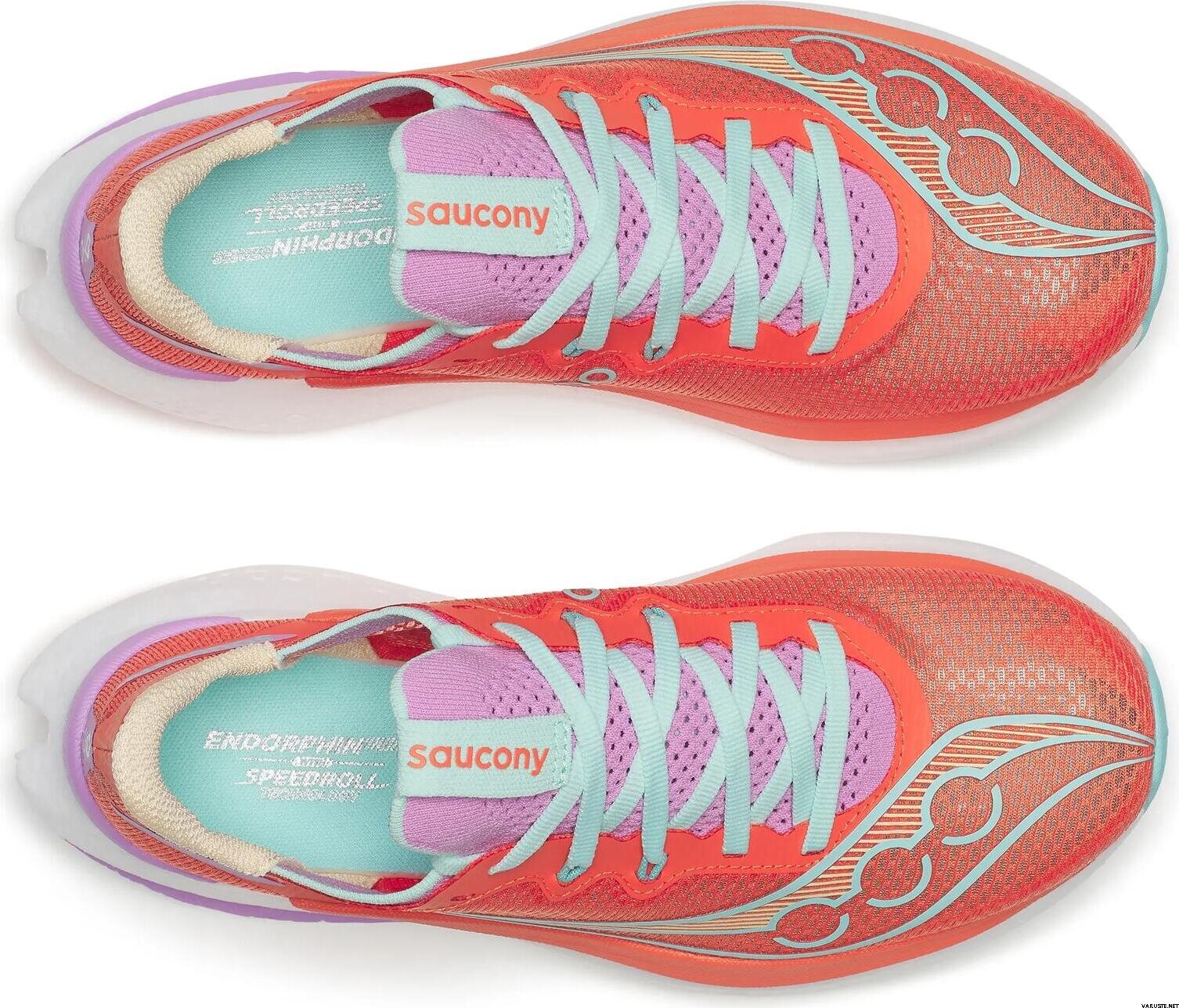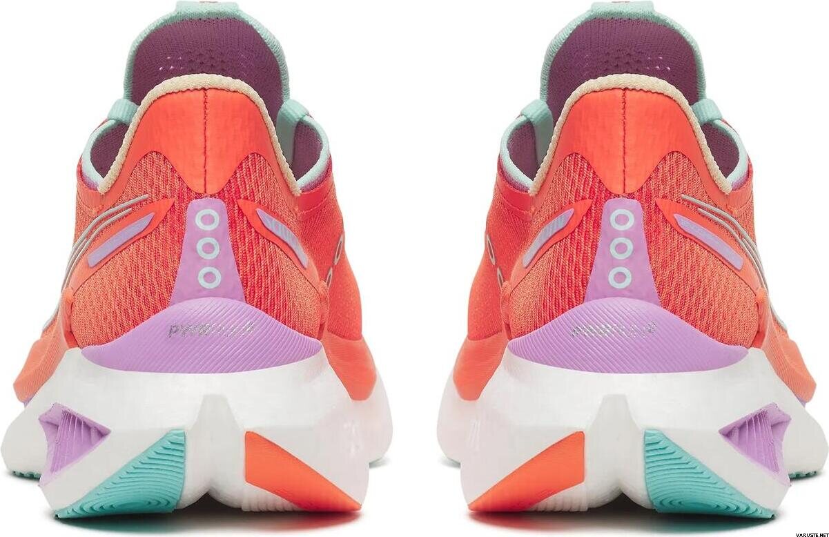 Saucony Endorphin Pro 5 naistele pakub teravamat ja võistlussõbralikumat sõidukogemust kahe tihedusega vahetallaga, mis tagab iga sammuga võimsa põrke. Need jooksujalatsid on loodud kiiruspäeva treeninguteks ja võistluspäevadeks, ühendades kiire pöörde sujuva edasiliikumise tundega. Ümbertöödeldud soontega süsinikplaat aitab luua kiiremaid üleminekuid maandumisest varvastelt eemale, samas kui välistald on loodud hoidma haarduvust usaldusväärsena ka tempo tõustes.