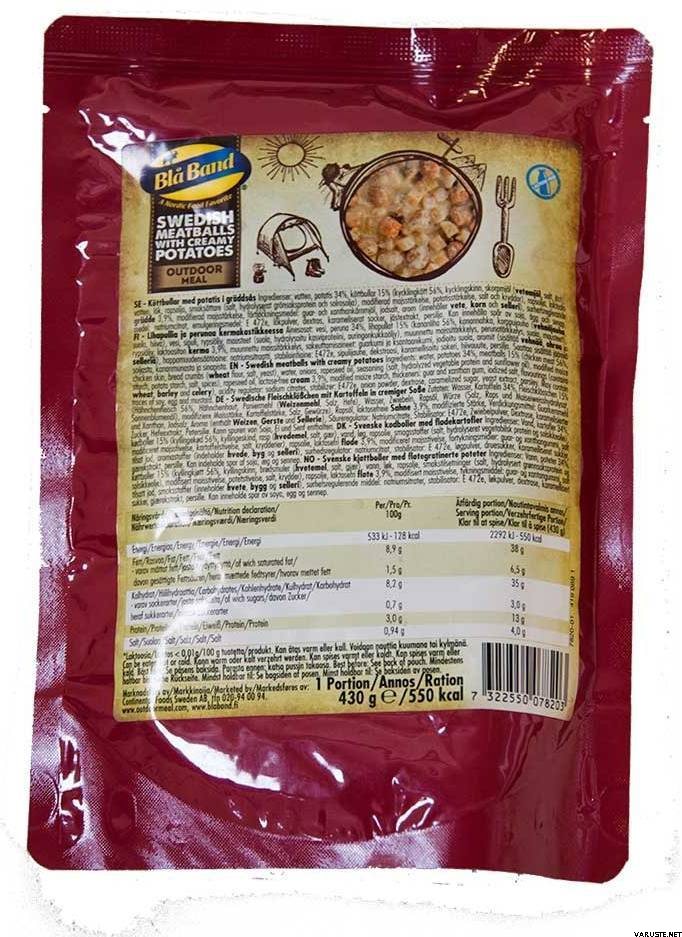 Luonnollisen makuinen retkiruokaa. Tämä ei ole kuivamuonaa vaan valmista ja sellaisenaan syömäkelpoista. Hyvä vaihtoehto esim. lyhyemmille retkille, mökkimajoitukseen ja muihin tilanteisiin joissa annospussin paino ei ole täysin kriittinen tekijä.
