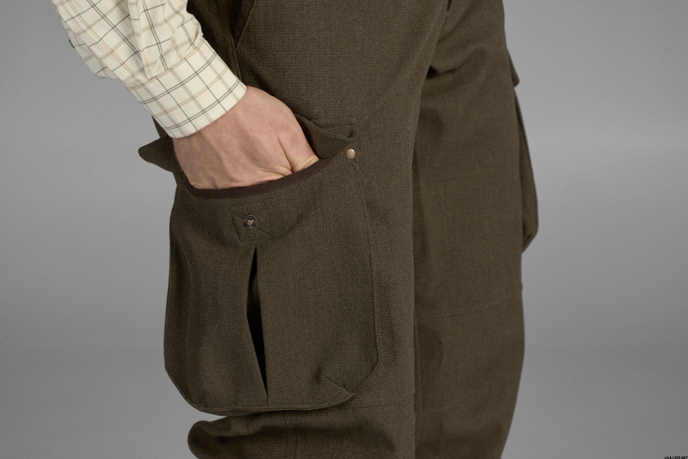 The Woodcock Advanced trousers are designed in the traditional English game-shooting style. But the traditional outer hides a wealth of carefully thought-out details. For optimum comfort and freedom of movement, the trousers are made from a stretch fabric and have articulated knees. Like the Woodcock Advanced jacket, they also have a windproof and waterproof membrane. The trousers feature thigh pockets with drain holes, ankle adjustments and braces buttons at the waist. So, even if the beats are only coming slowly and the weather is keeping the birds from flying high, you are guaranteed comfort and freedom of movement for the entire shoot. Together with the Woodcock Advanced jacket, they make a suit to perfectly fit in with any shooting party, but without restricting your freedom of movement.