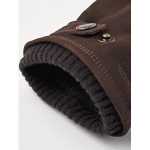 Un gant d'hiver chaud classique cousu en cuir de chèvre nubuck. Une version homme élégante et minimaliste avec une manchette courte en bord-côte et une lanière en cuir avec bouton pression sur le revers de la main. Une doublure en molleton de polyester doux avec une isolation synthétique Primaloft Gold offre une chaleur confortable pendant les froides journées d'hiver. Il s'agit d'un gant confortable, à la fois sportif et élégant, qui fonctionne aussi bien en terrain urbain qu'en milieu plus rural.