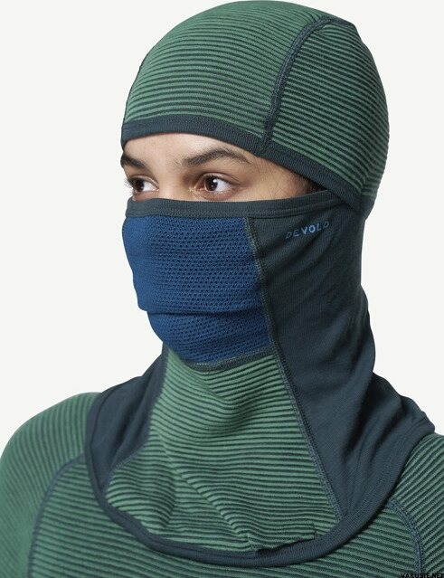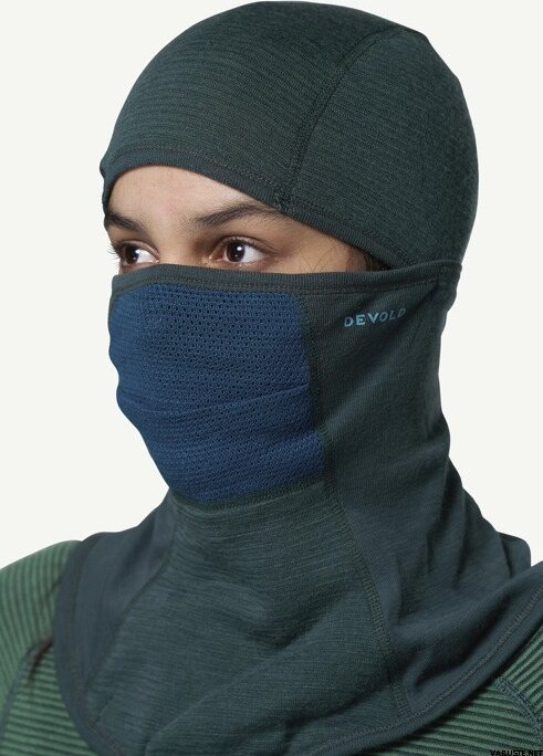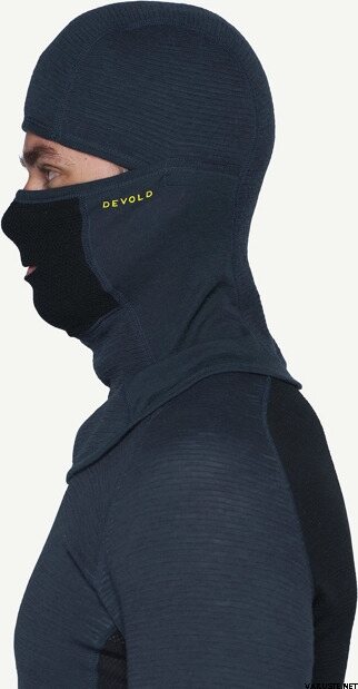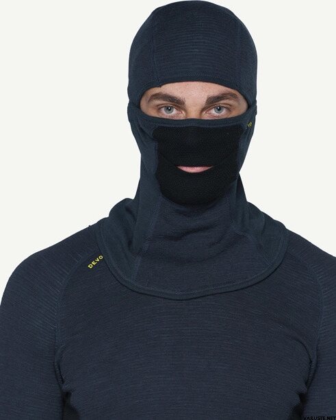 Cette cagoule offre une protection contre les intempéries et le vent par temps froid. Bien ajusté au visage, à la tête et au cou, ce qui empêche le froid contre la peau nue. La cagoule peut être portée des deux côtés, avec différents niveaux d'isolation. Le côté plat offre une grande respirabilité, tandis que le côté tricoté avec des poches d'air offre un haut degré d'isolation. Le tissu en filet de laine sur le nez et la bouche sèche rapidement.
