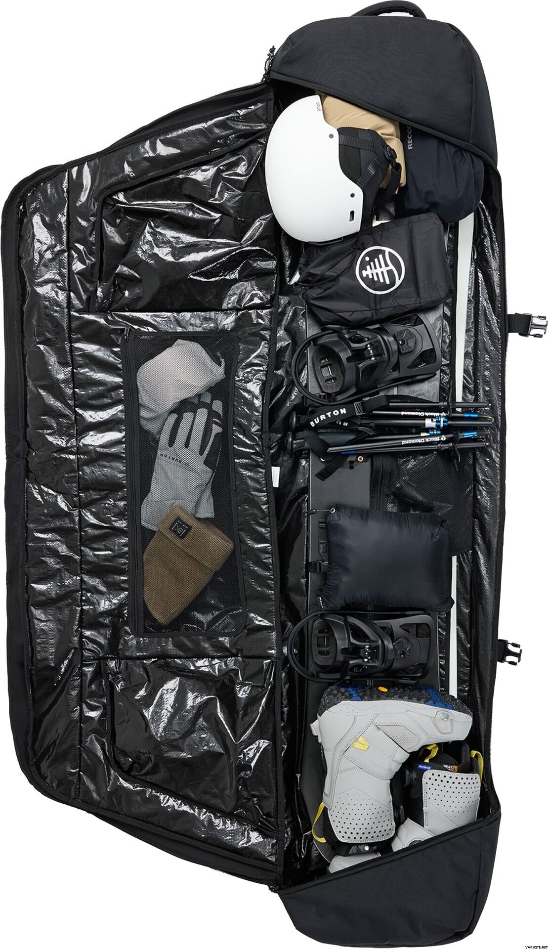- Sangles intérieures pour maintenir la planche en place ; Poches intérieures zippées en filet; Les zones de cram s'étirent pour contenir ce petit plus si nécessaire.