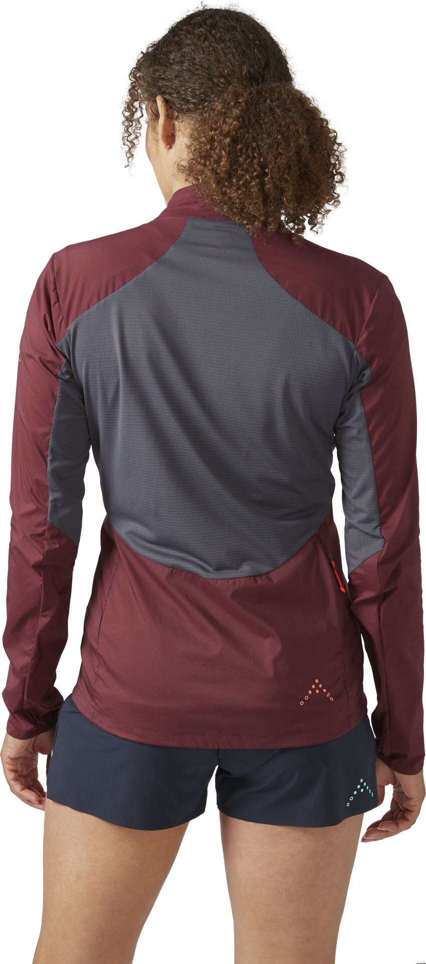 The body-mapped fabric positioning has been deliberately designed to efficiently regulate your heat and sweat, particularly when you’re wearing it with a hydration vest. Elasticated cuffs allow you to quickly check your progress on your sports watch or activity tracker and are extended to protect your hands from the cold on blustery ridges. The hem drawcord helps to seal out wind chill, while the lightweight full-length zip provides additional venting when you’re attacking an incline. Your gels or card can be stored in the small back pocket, which doubles up as a stuff sack for the jacket when it’s not needed.