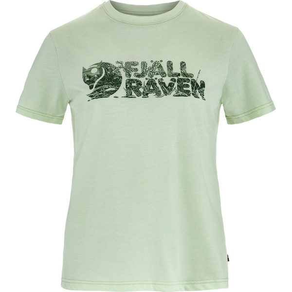 Le T-shirt Lush Logo conçu pour les femmes par Fjällräven est confectionné à partir d'un tricot en jersey durable qui allie harmonieusement la fonctionnalité et la durabilité du polyester recyclé à la douceur du coton biologique. Le Lush Logo T-shirt W évacue efficacement l'humidité et sèche rapidement, assurant un confort exceptionnel dans les climats chauds. Dotée d'un graphique saisonnier avec un logo intégré imprimé sur la poitrine, cette chemise est dotée d'une encolure ronde pour une finition élégante.