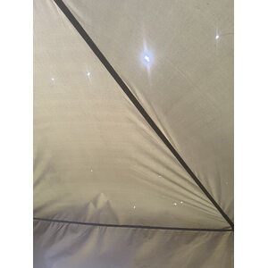 L'intérieur est suffisamment grand pour accueillir deux bancs pour deux personnes et le poêle. La fenêtre arrière offre un peu de lumière et permet de jeter un œil à l'extérieur. L'entrée est zippée et peut être enroulée et sécurisée. Un cordon est attaché au sommet du plafond, c'est un point d'attache pour un thermomètre de sauna pour vous aider à surveiller la température et à ne pas surchauffer la tente.