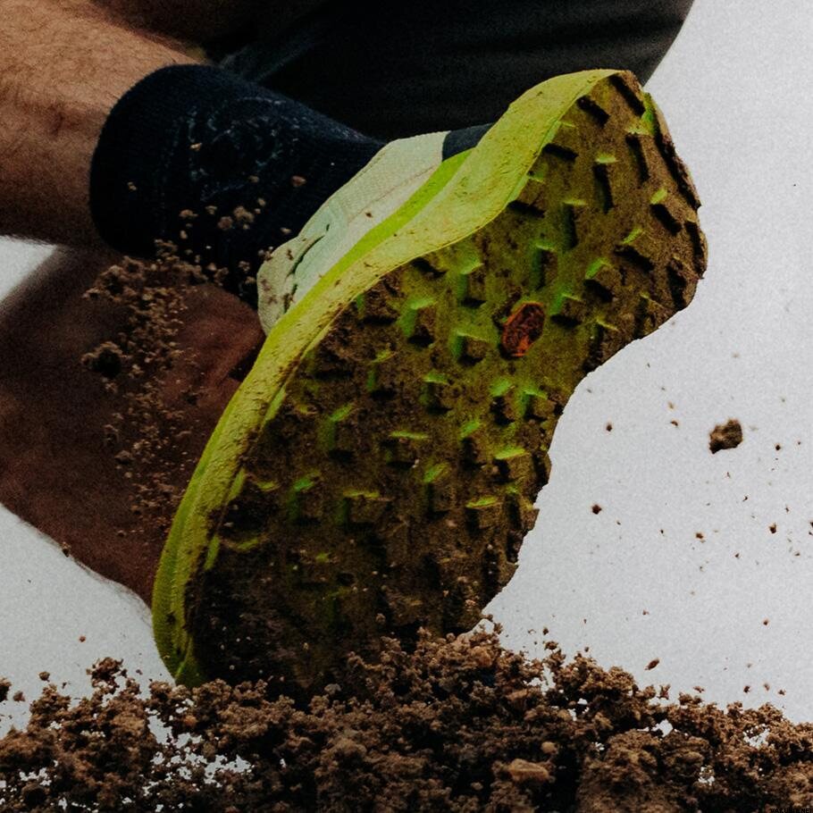 - Crampons personnalisés de 4 mm qui évacuent la boue pour une meilleure adhérence sur terrain ferme et sur sentiers plus meubles.