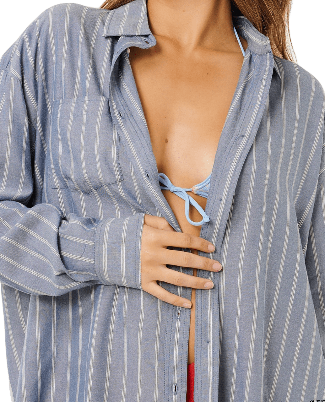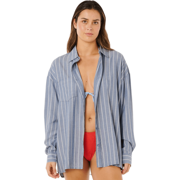 La chemise à rayures Rip Curl Beach Days pour femme évoque l'élégance du bord de mer grâce à ses rayures teintes dans la masse et ses finitions soignées. Facile à porter au quotidien pour vos sorties estivales, elle se marie aussi bien avec un maillot de bain qu'avec un pantalon décontracté. Une poche poitrine offre un espace de rangement pratique, tandis que le logo métallique apporte une touche raffinée.
