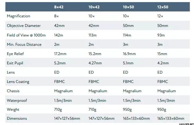 Diamètre de l'objectif : 42 mm ou 50 mm