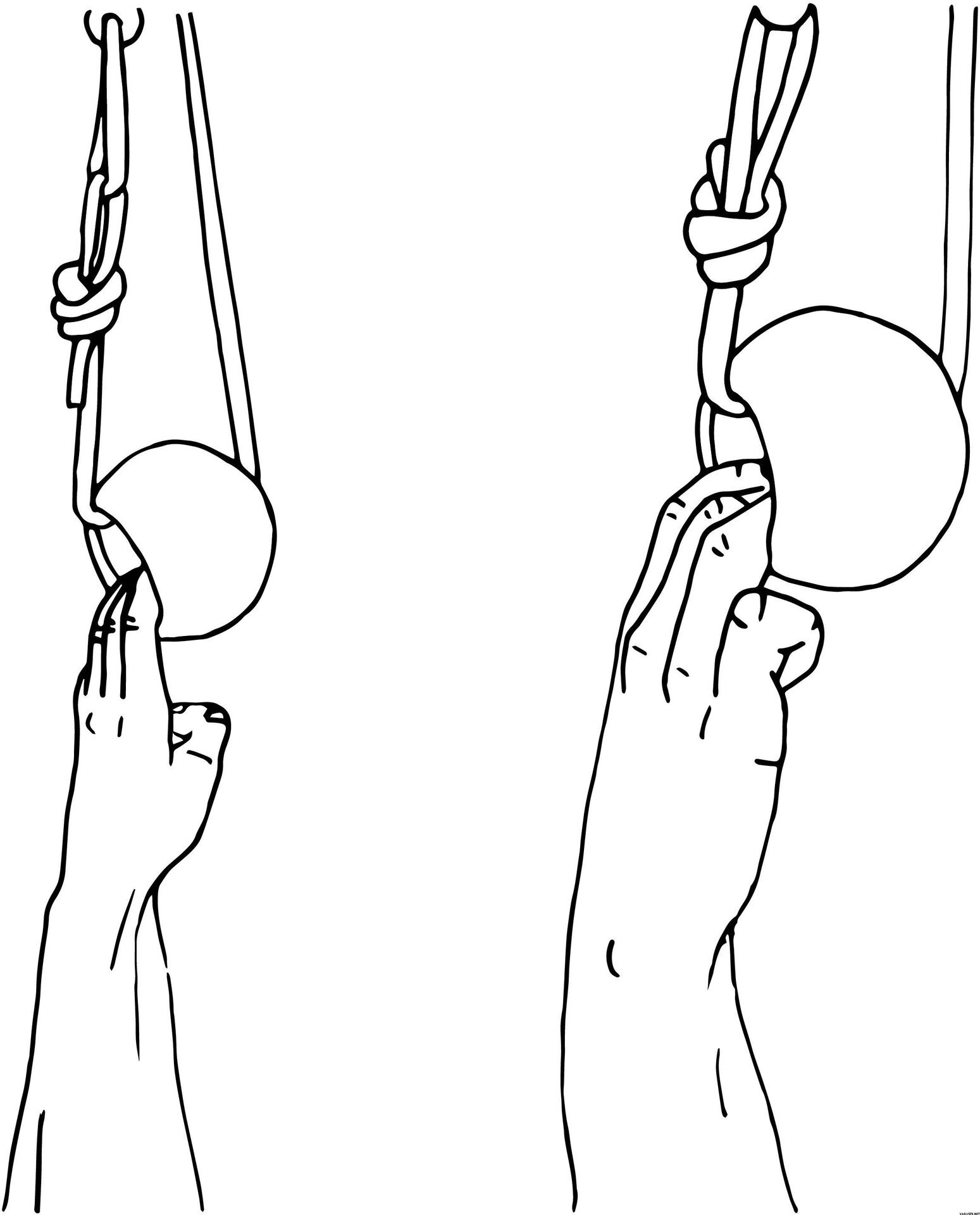 Pull your rope through the ball and fix it with a carabiner into a loop: now you have a rotating round hold or you can use it as a hanging pocket.