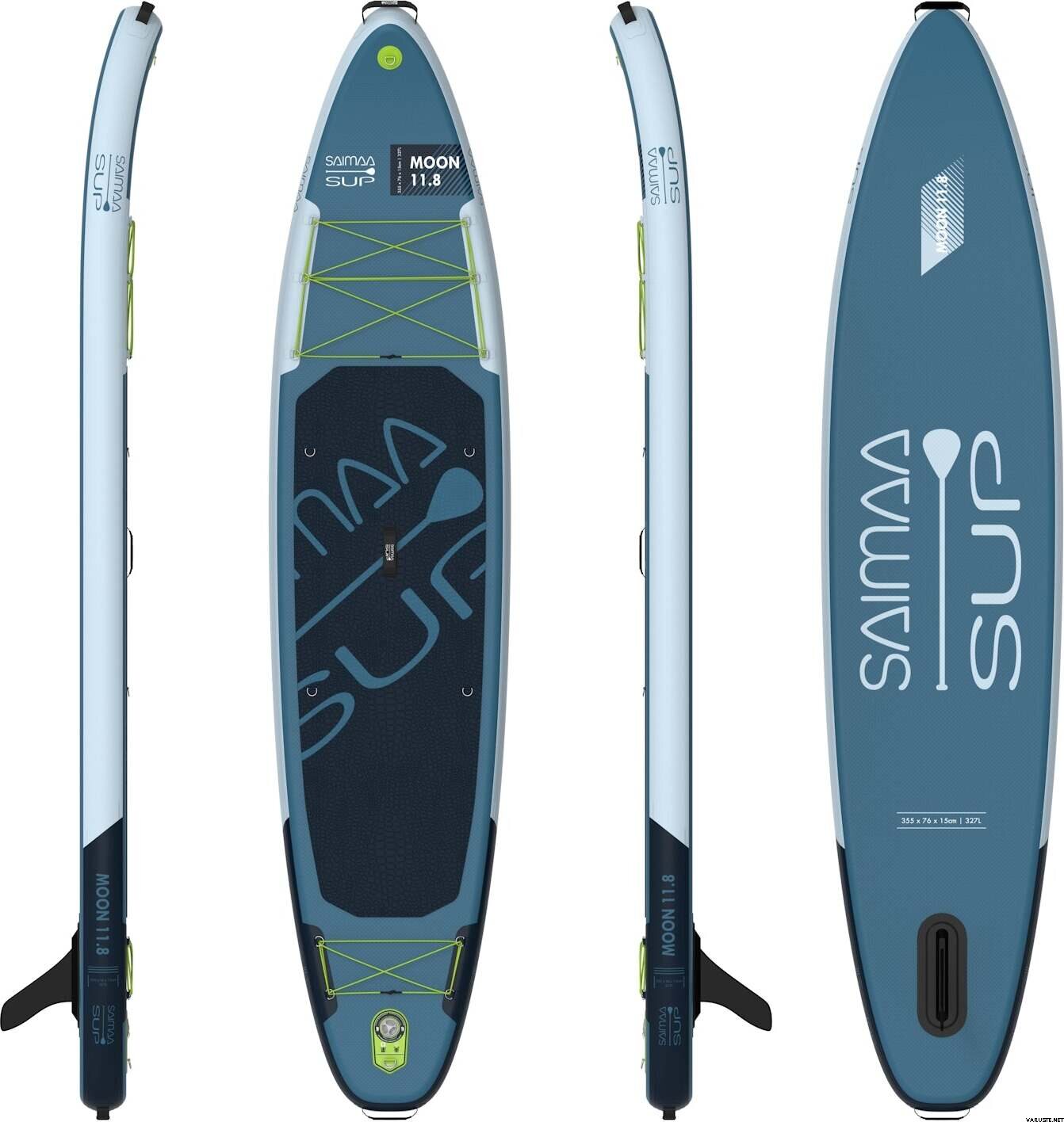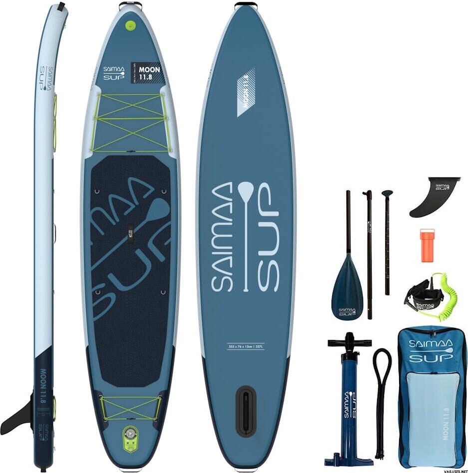A Saimaa SUP Moon 11.8 (355x76x15cm / 11.6" x 30x6", 327L, 9.5kg) egy szuper csúszó utazódeszka, amely a Saimaa sorozat egyik zászlóshajója. A tábla a legjobb és legtartósabb anyagokból készül (Fusion PVC), amely akár 25 psi nyomást is lehetővé tesz. A csomag tetejére egy könnyű és merev szénszálas lapáttengely, egy gyorsreteszelő borda (nincs kilazult/elveszett alkatrész!) és természetesen három év garancia.