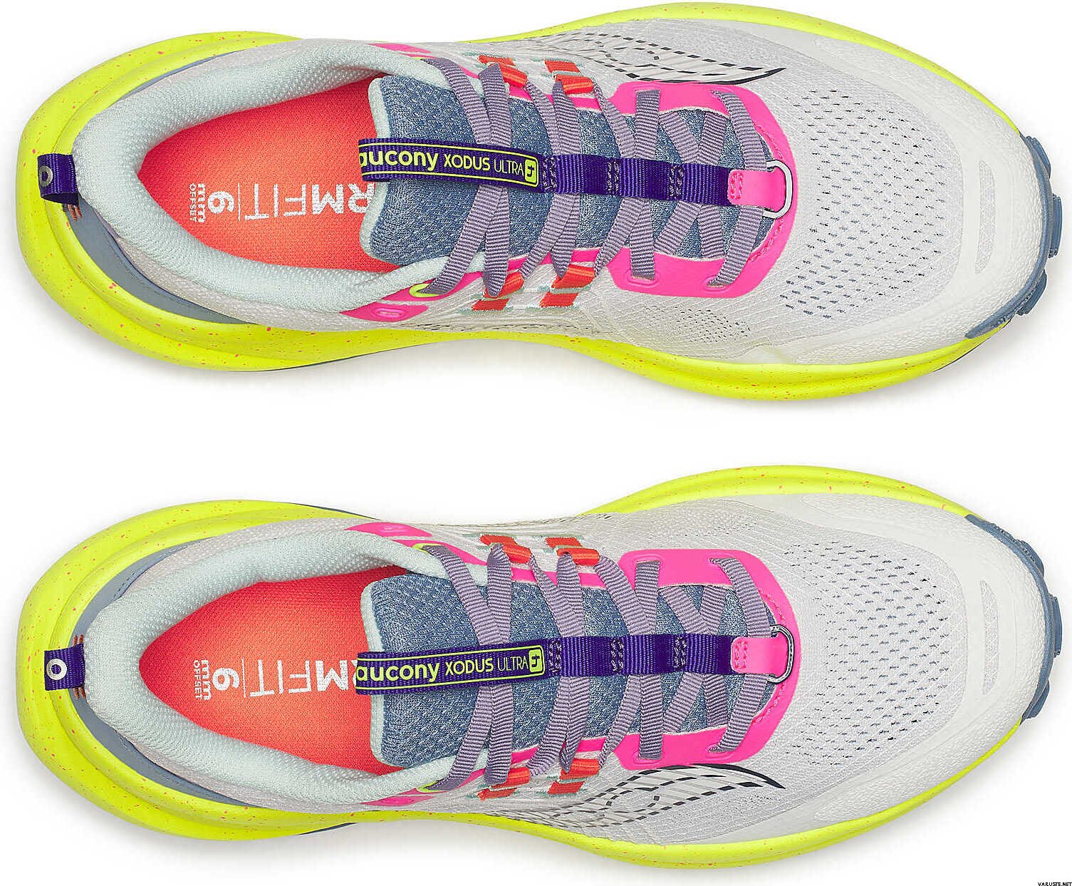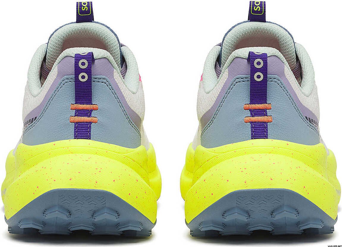 A Saucony Xodus Ultra 4 női cipőt azok számára tervezték, akik maximális párnázottságot keresnek terepfutó cipőikben. Ez a modell hosszú távú kalandokra készült, kivételes tapadást, robusztus védelmet és kiváló kényelmet kínál, hogy magabiztosan mozoghass bármilyen terepen. A cipő közvetlenül a talp alatt egy puha PWRRUN PB habbal rendelkezik, amelyet tartós PWRRUN váz vesz körül a fokozott védelem és a hosszú élettartam érdekében. A teljes fedést biztosító Vibram MegaGrip külső talp kiváló tapadást biztosít egyenetlen felületeken.