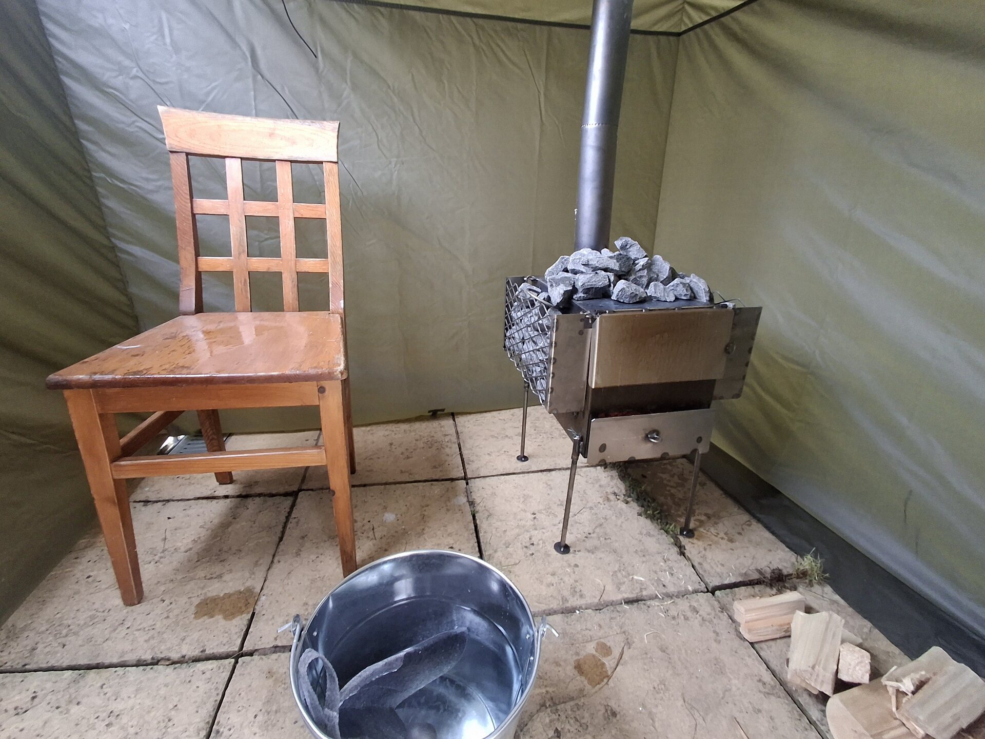 A Savotta Sauna Tent Stove egy sokoldalú és hordozható fatüzelésű kályha, amelyet kifejezetten a Hiisi szaunasátrak sorozatához terveztek. Ez a sátorkályha kéménnyel és kőállványokkal rendelkezik, így ideális választás azok számára, akik kényelmes és hatékony fűtési megoldást keresnek kültéri szaunázási élményükhöz. Kompakt kialakítása lehetővé teszi az egyszerű szállítást, akár járművel, akár gyalogosan, és az összecsukható lábak további előnye az egyszerű beállítás és tárolás.