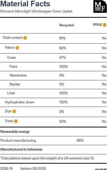 Fő anyag: 15D szélálló Gore-Tex Labs termékek fluorkarbonmentes DWR-rel