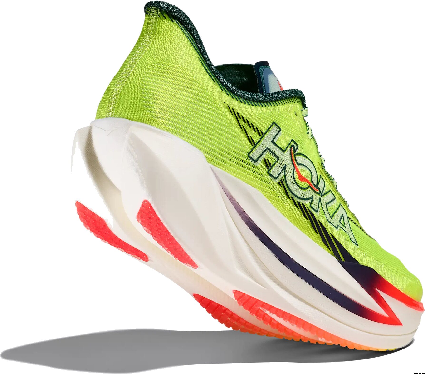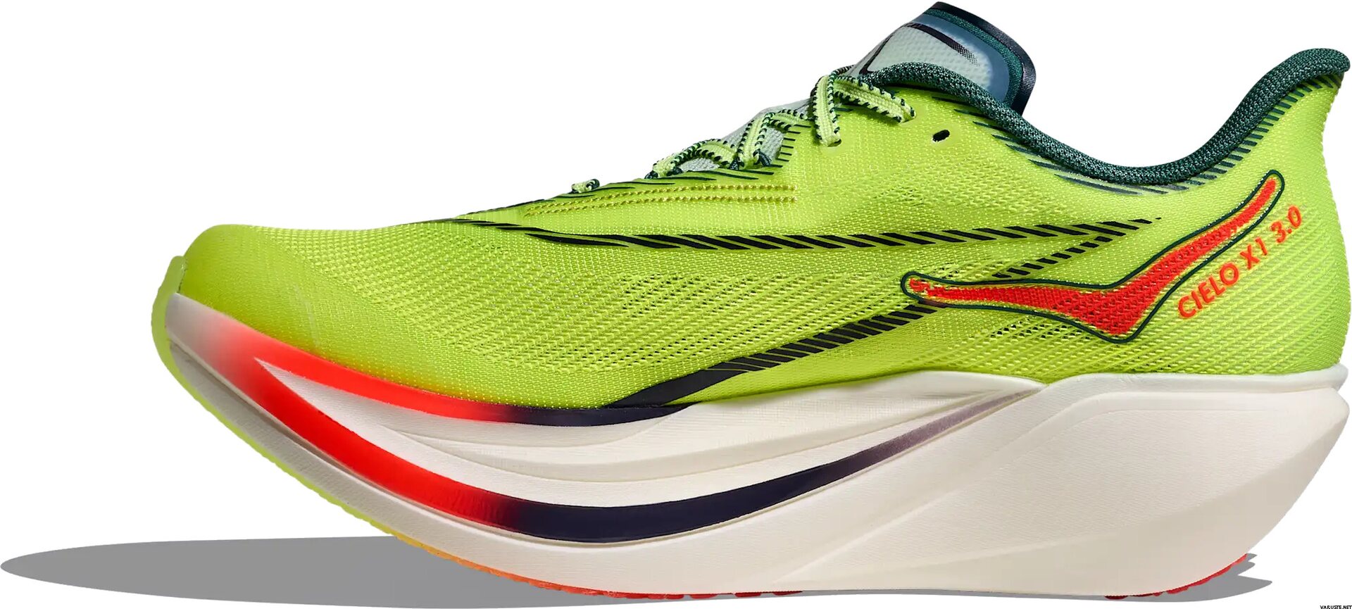 A Hoka Cielo X1 3.0 Unisex cipőt azoknak tervezték, akik a verseny napján a sebességre és a hatékonyságra vágynak. A Hoka kínálatának legkönnyebb szupercipőjeként dinamikus futást kínál ultrakönnyű kialakításával és reszponzív tulajdonságaival. Ez a versenycipő lendületes szénszálas lemezzel és ultrapuha PEBA habbal van felszerelve, ami fürge és energikus teljesítményt biztosít. Az aszimmetrikus fűzőrendszer és a tapadós külső talp biztonságos illeszkedést és kiváló tapadást biztosít, így a legjobb választás azoknak a sportolóknak, akik egyéni rekordokat szeretnének megdönteni.