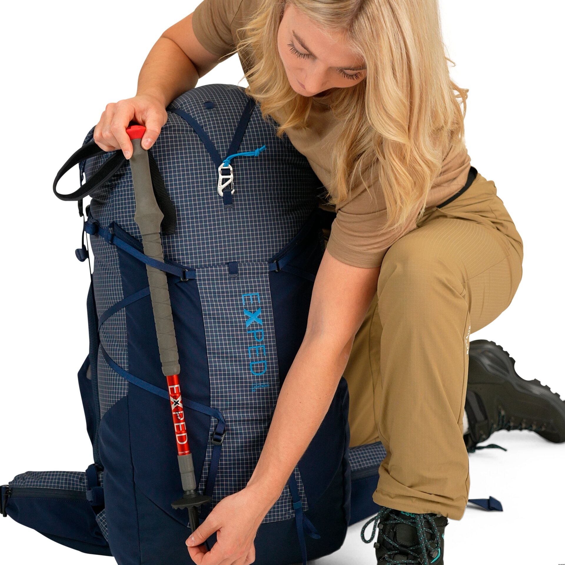 Az Exped Lightning 60 egy ultrakönnyű, anatómiai kialakítású, uniszex hátizsák, amelyet a hosszú túrákon is kényelmes viseletre terveztek az állítható T-Rex felfüggesztésnek és a roll-top záródásnak köszönhetően. A hátizsák mozgása természetes marad a csökkentett érintkezési pontoknak köszönhetően, amelyek elősegítik a légáramlást a hát mentén, miközben hatékonyan osztják el a súlyt a csípőövre. Az intelligens hangerőszabályzó cikkcakk kompressziós pántokkal megkönnyíti a rakomány csökkentését vagy a terjedelmes tárgyak, például alvószőnyeg rögzítését. Több külső és csípőöv zseb, valamint moduláris rögzítési pontok segítenek a felszerelés rendszerezésében a többnapos hátizsákos túrákon.