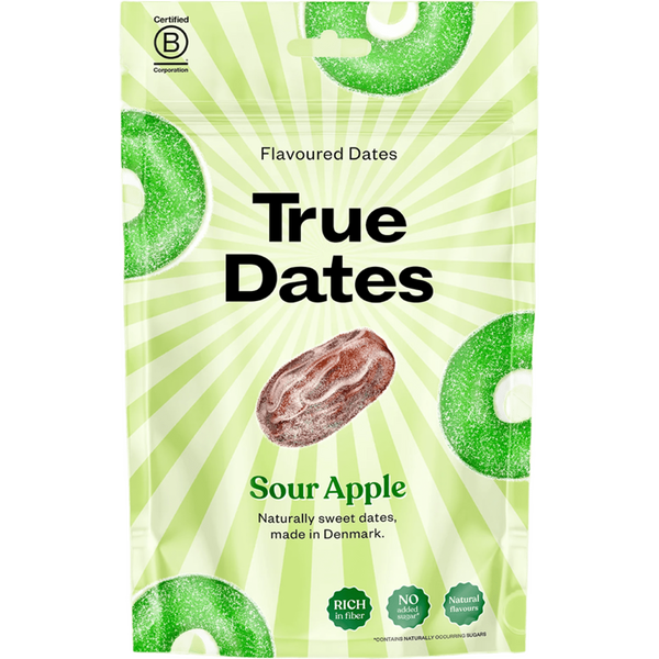 A True Co. True Datolyasavanyú almás 100g egy ütős, édes-savanyú falatot kínál a természetesen édes datolya és a ropogós, savanykás alma ízének párosításával. Ezek a nassolnivalók könnyen élvezhetők útközben, ha gyors, gyümölcsalapú finomságra van szükség. A datolya kimagozott a könnyebb nassolás és a kényelmesebb fogyasztás érdekében.
