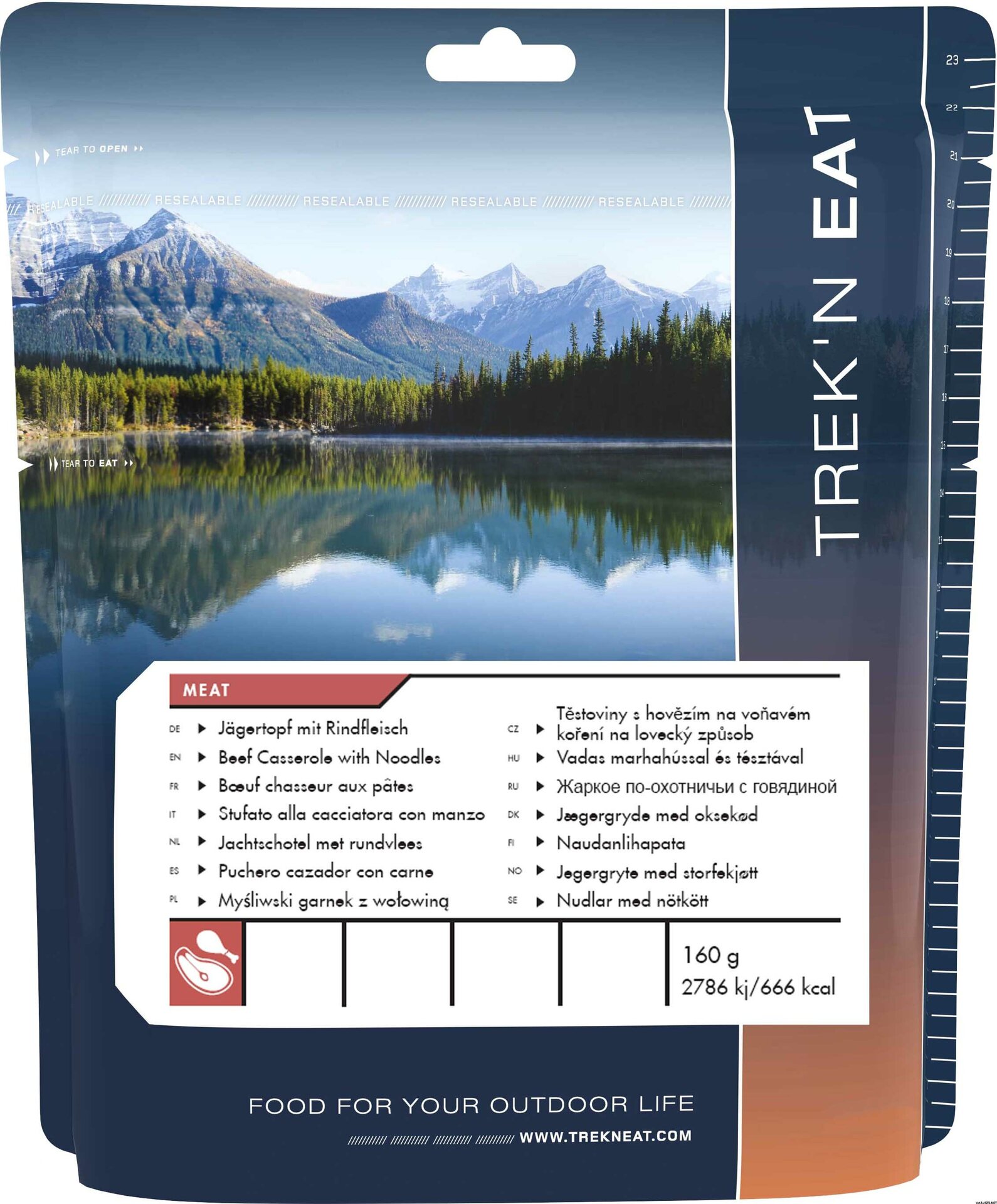 Meals from Trek’n Eat are created withquality freeze-dried ingredients, and thus maintain most of the food‘s natural vitamins and minerals. Few flavour enhancers and flavourings are used in creating Trek’n Eat foods; this also makes the pot easier to clean. Trek’n Eat foods have a higher calorie count and are packaged in waterproof, expedition-ready containers.