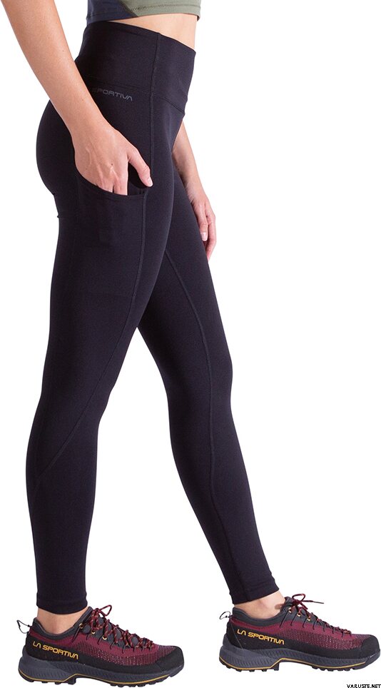 I leggings La Sportiva Cosmosis da donna offrono un supporto ottimale grazie al design a vita alta che non si arrotola, garantendo libertà di movimento sia in arrampicata che nella vita di tutti i giorni. Questi pantaloni da arrampicata da donna sono realizzati in un tessuto elasticizzato leggero e resistente che segue i movimenti dinamici dei piedi e i passi alti, offrendo al contempo una leggera compressione. Il tassello sul cavallo contribuisce a mantenere la libertà di movimento durante le sessioni di bouldering, l'allenamento in palestra e l'uso quotidiano. Le tasche sulla coscia e all'interno della fascia in vita permettono di tenere a portata di mano i piccoli oggetti essenziali, evitando che si muovano.