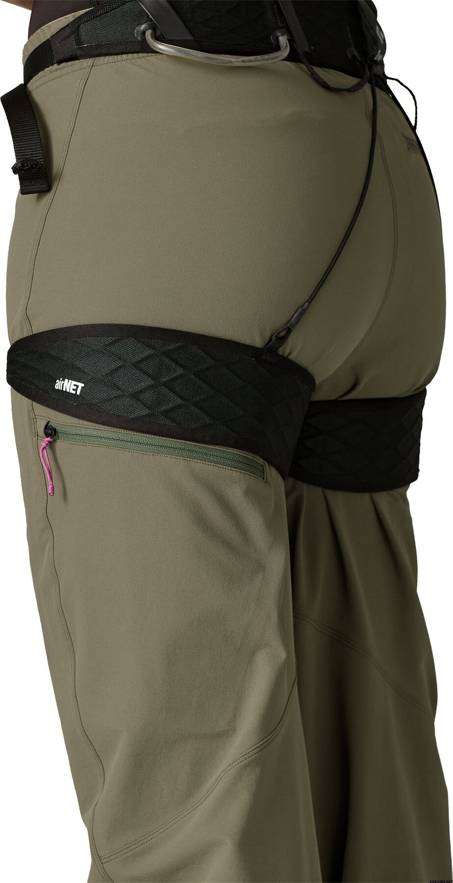 - Dispone di due tasche con cerniera sulla coscia e una tasca posteriore con cerniera