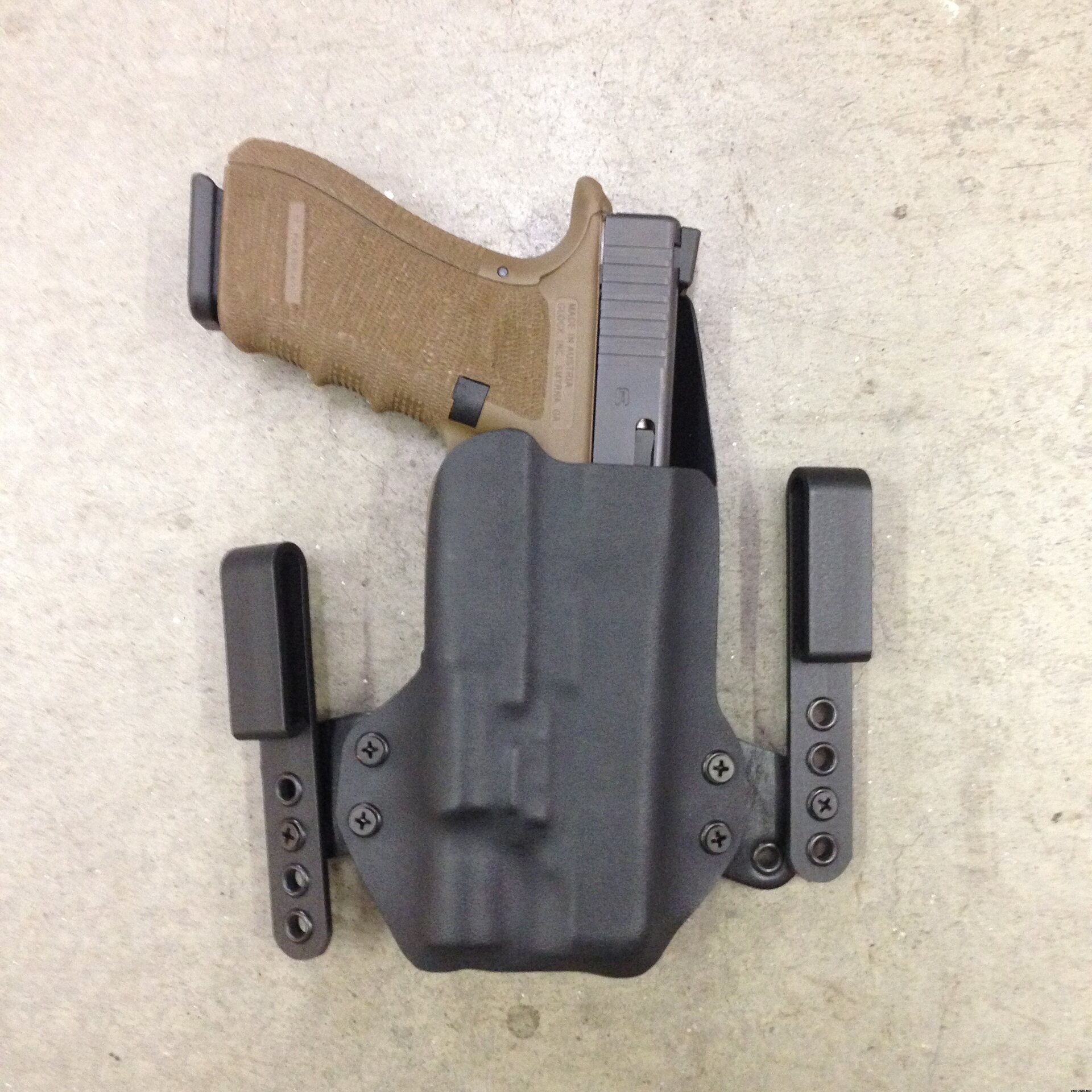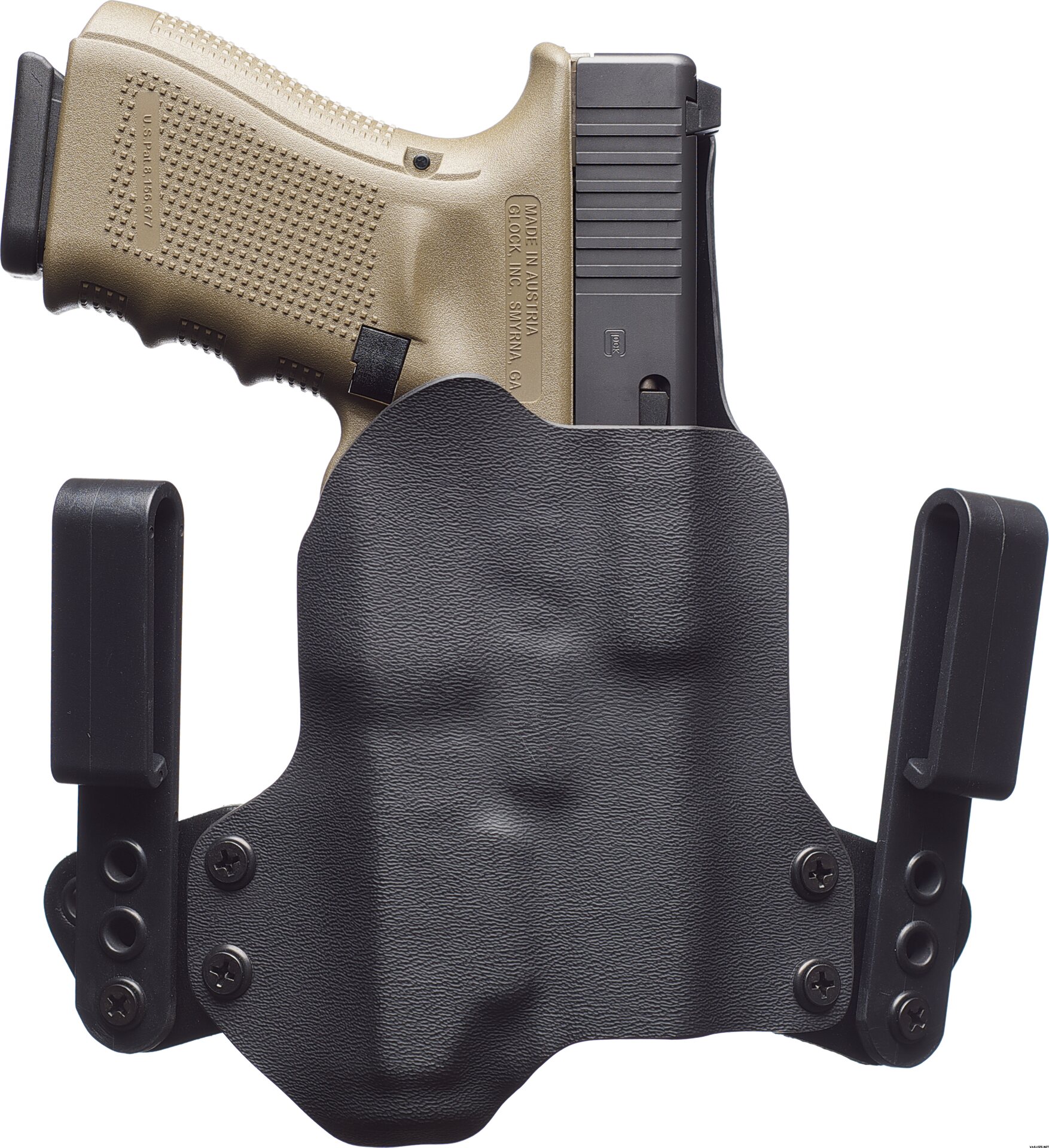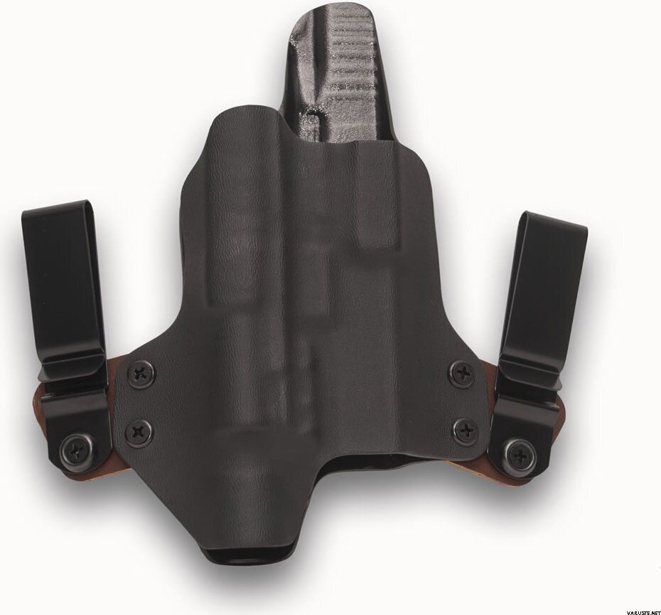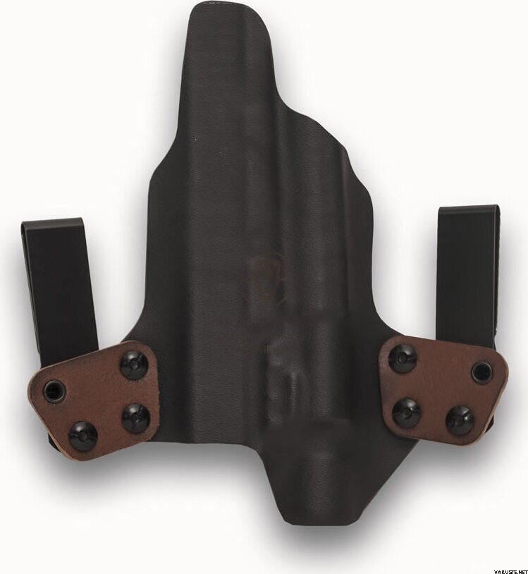 L'abbinamento di KYDEX® e pelle in questa fondina consente al KYDEX® di trattenere la pistola in modo affidabile senza bisogno di rodaggio o usura. Inoltre, il guscio in KYDEX® impedisce alla fondina di collassare quando la pistola è estratta e rimane aperta per un facile inserimento con una sola mano. Le "mini alette" in pelle sono integrate per consentire alla fondina di avvolgere i contorni della vita, consentendo una vestibilità versatile per tutte le corporature. Le "mini alette" conferiscono alla fondina la flessibilità necessaria per muoversi con il corpo, rendendola comoda da usare tutto il giorno, tutti i giorni. Le "mini alette" sono state progettate per offrire all'utente una varietà di diverse configurazioni per il porto IWB. L'utente ha una maggiore gamma di opzioni per l'altezza da terra e una varietà di posizioni intorno alla vita, dall'appendice fino alla parte bassa della schiena.